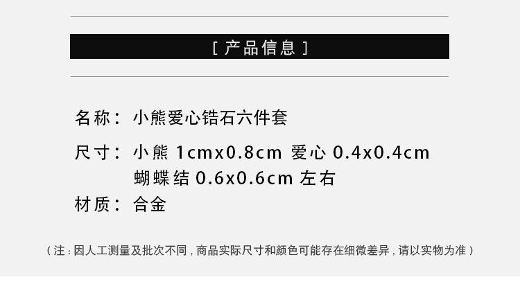 Bear heart zircon six-piece set, Bear Head love six-piece set
