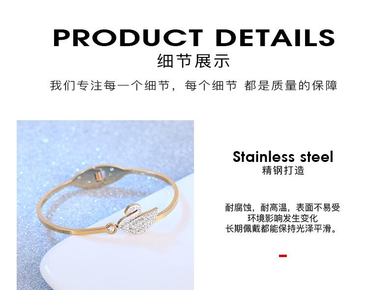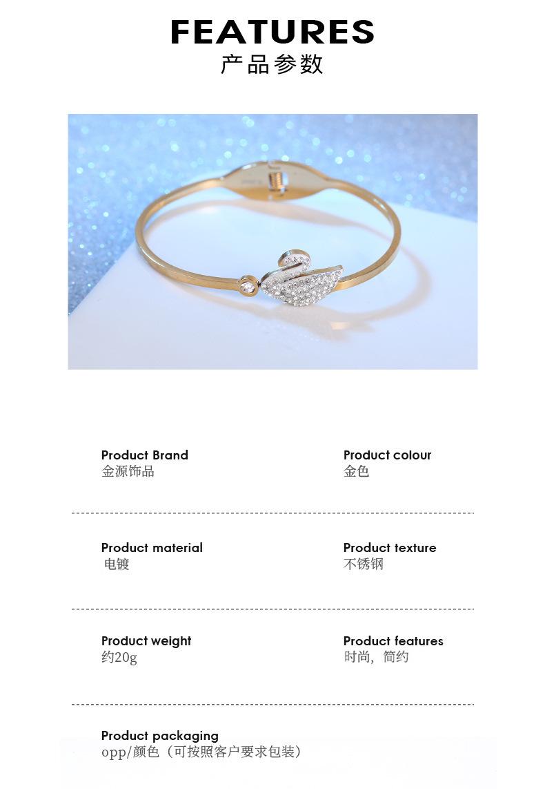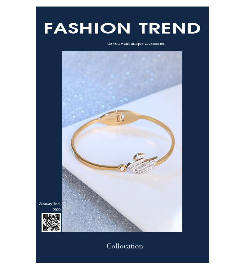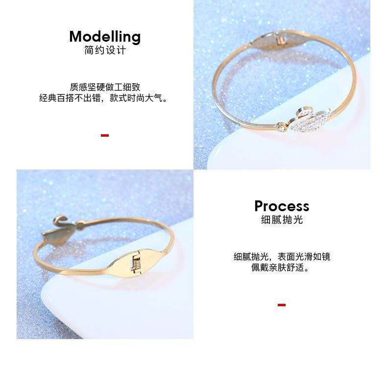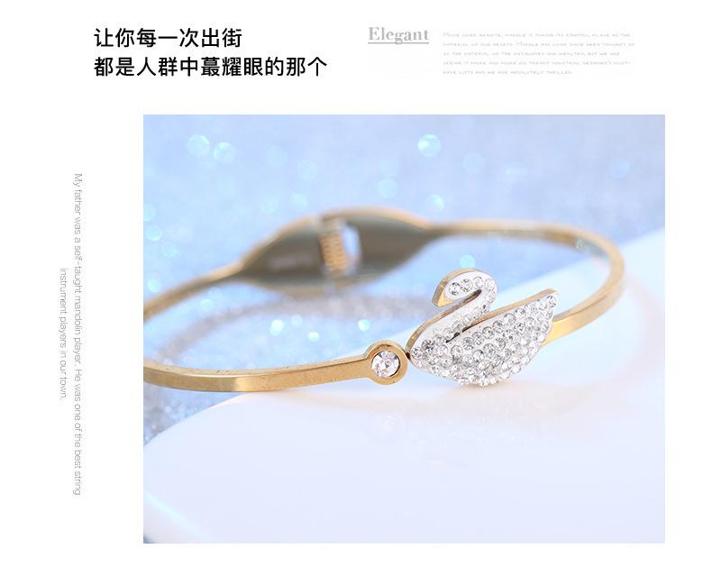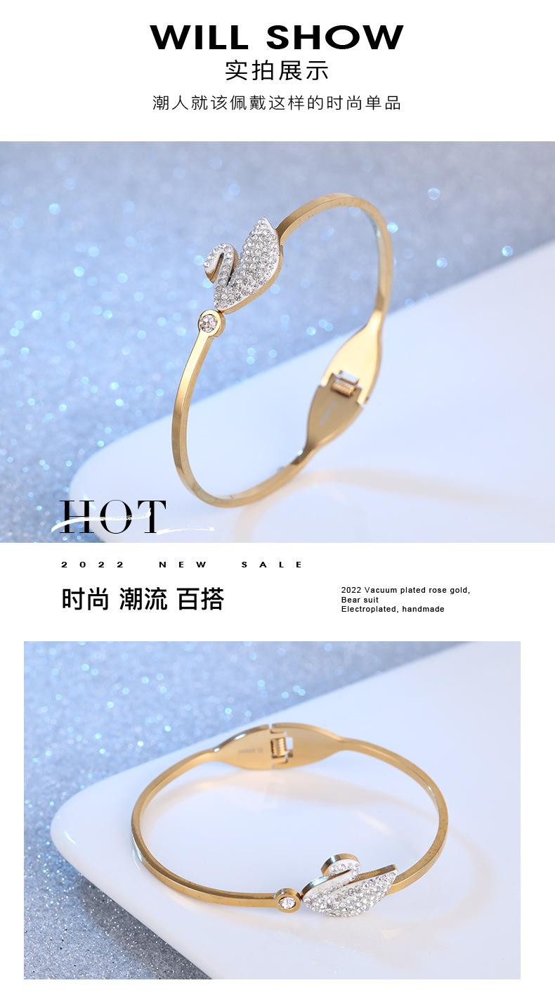 Pulsera Cisne Pequeño Acero Titanio Dorado para Mujer Pulsera Simple de Diamantes Acero Inoxidable con Resorte Joyería de Acero Titanio al por Mayor en Dongguan
