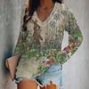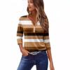 Camiseta informal de manga larga para mujer europea y americana transfronteriza de Amazon, con costuras tricolores y botones en contraste, personalizable.