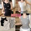 Primavera Nuevo Estilo Rayas Color Puro Cuello V Sin Mangas Jersey Chaleco Versátil para Mujer Casual Suelto Chaleco para Mujer