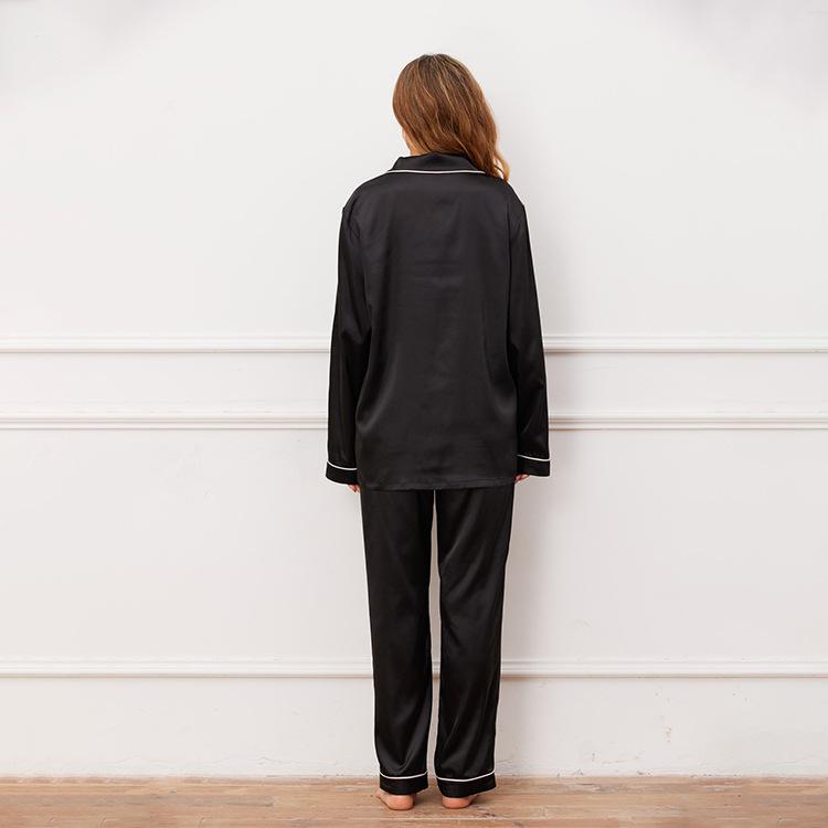 Conjunto de Ropa para el Hogar de Otoño e Invierno para Mujer Europea y Americana, Satén Imitación Seda, Manga Larga, Pantalones, Conjunto de Pijama de Dos Piezas
