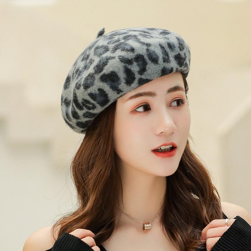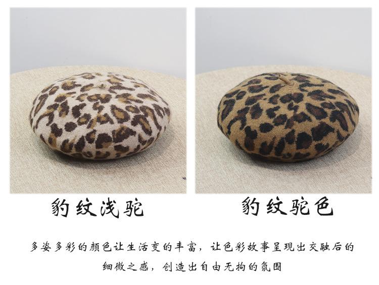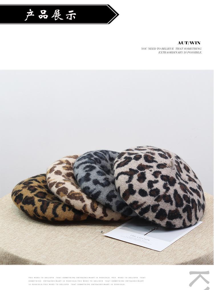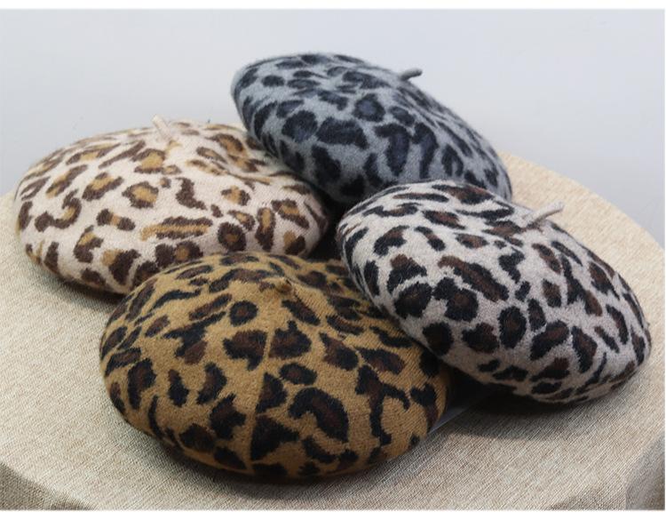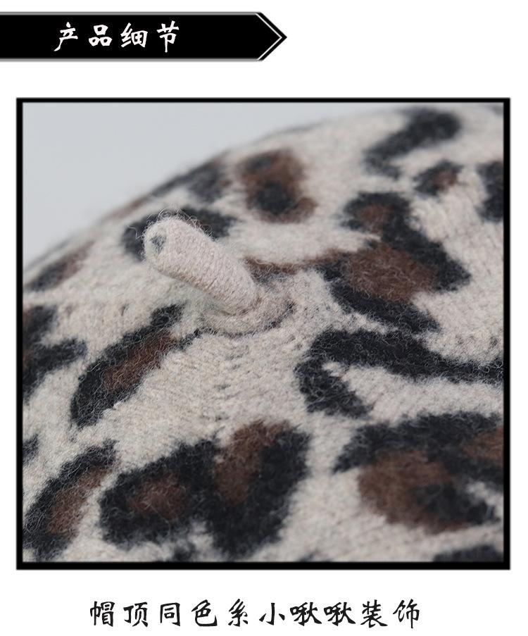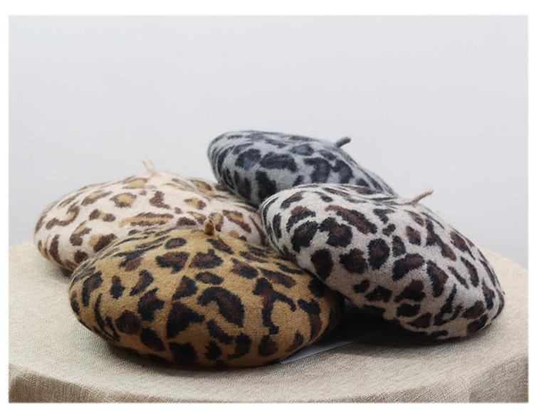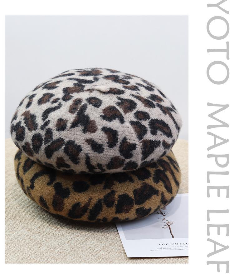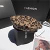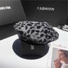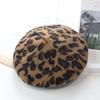 Sombrero de Leopardo de Otoño e Invierno para Mujer, Boina de Estilo Japonés, Sombrero de Artista Moderno y Cálido, Versátil Sombrero de Calabaza Literario, Parte Superior Suave de Moda