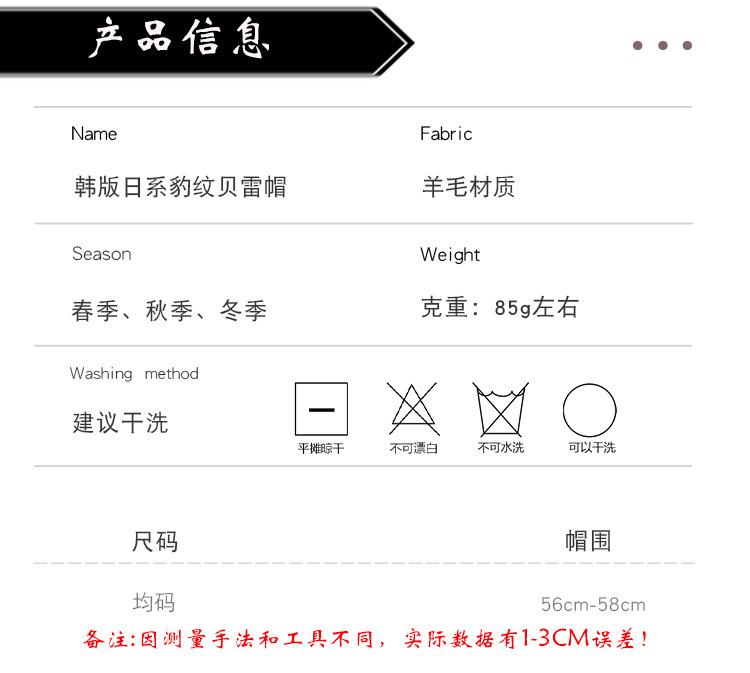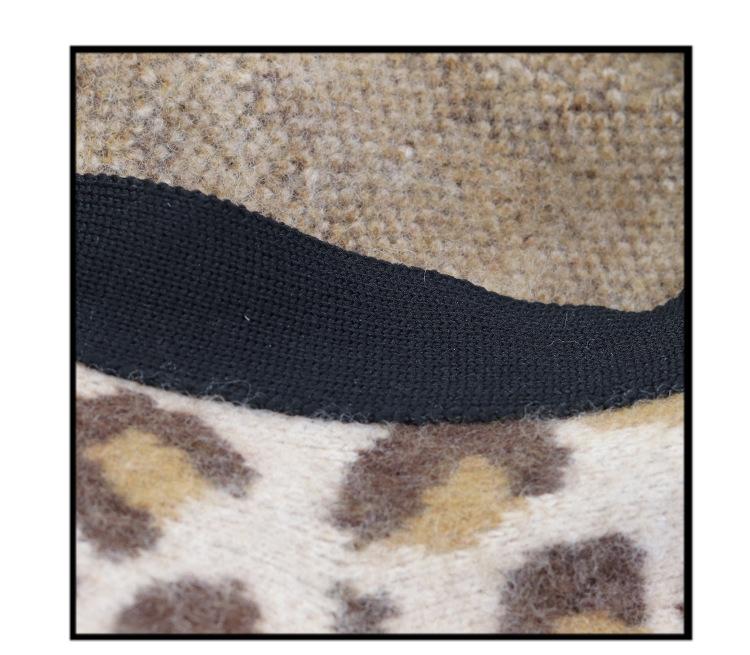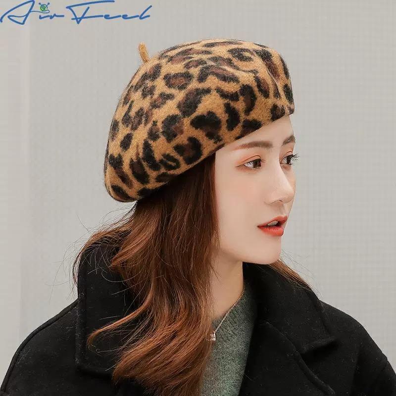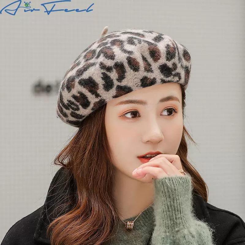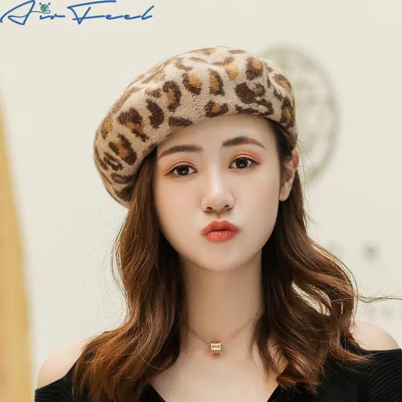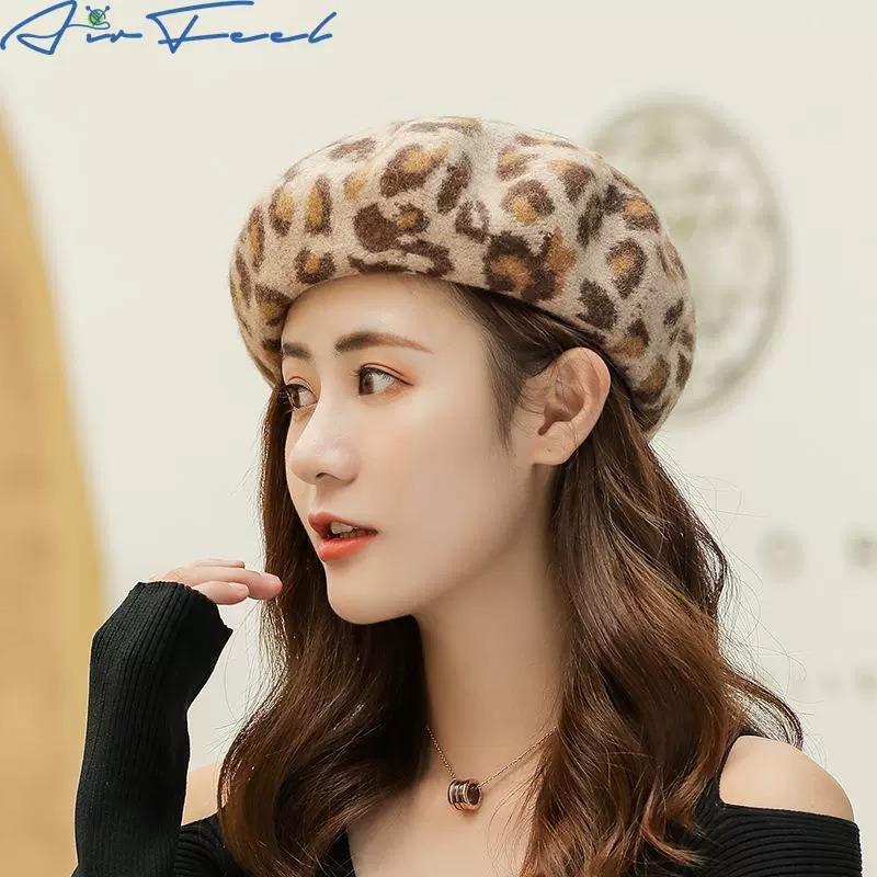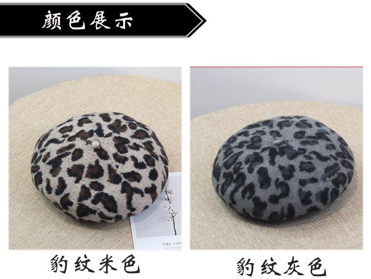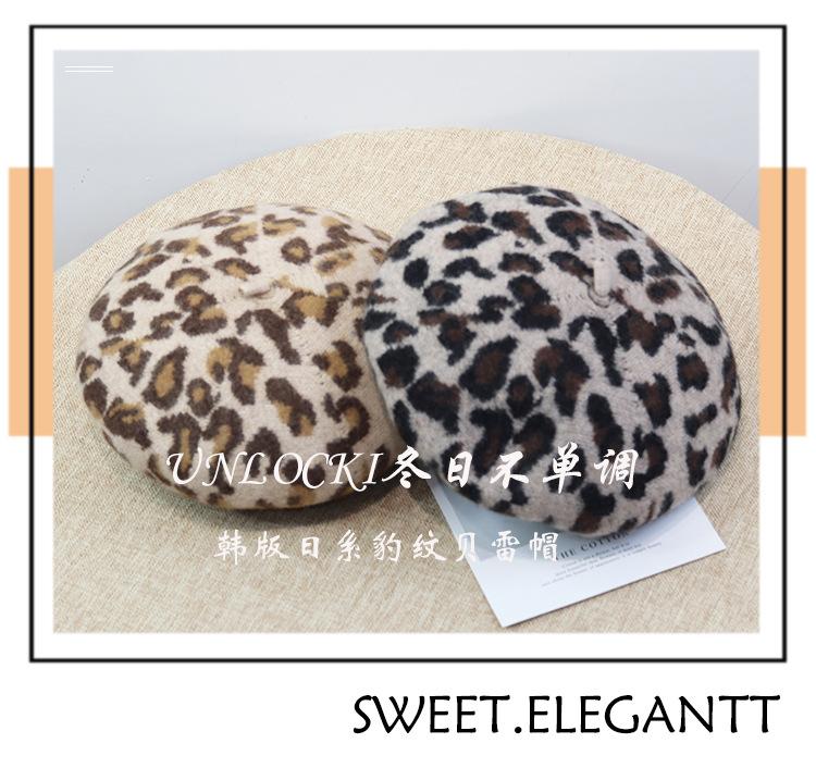 Sombrero de Leopardo de Otoño e Invierno para Mujer, Boina de Estilo Japonés, Sombrero de Artista Moderno y Cálido, Versátil Sombrero de Calabaza Literario, Parte Superior Suave de Moda