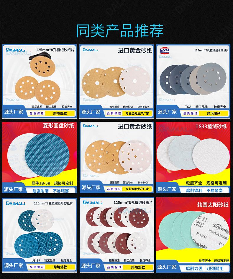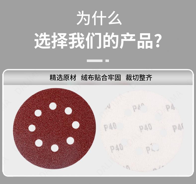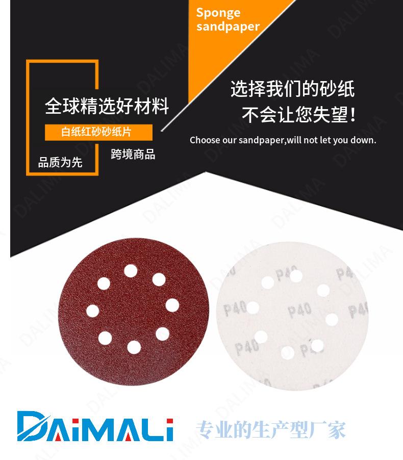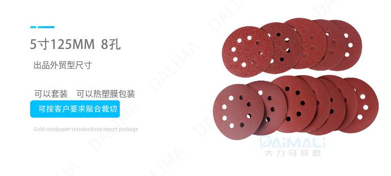 Productos populares transfronterizos, papel de lija flocado de 5 pulgadas y 8 agujeros, papel de lija cepillado con arena roja de Amazon, disco de lija de pulido con aire de 125 mm
