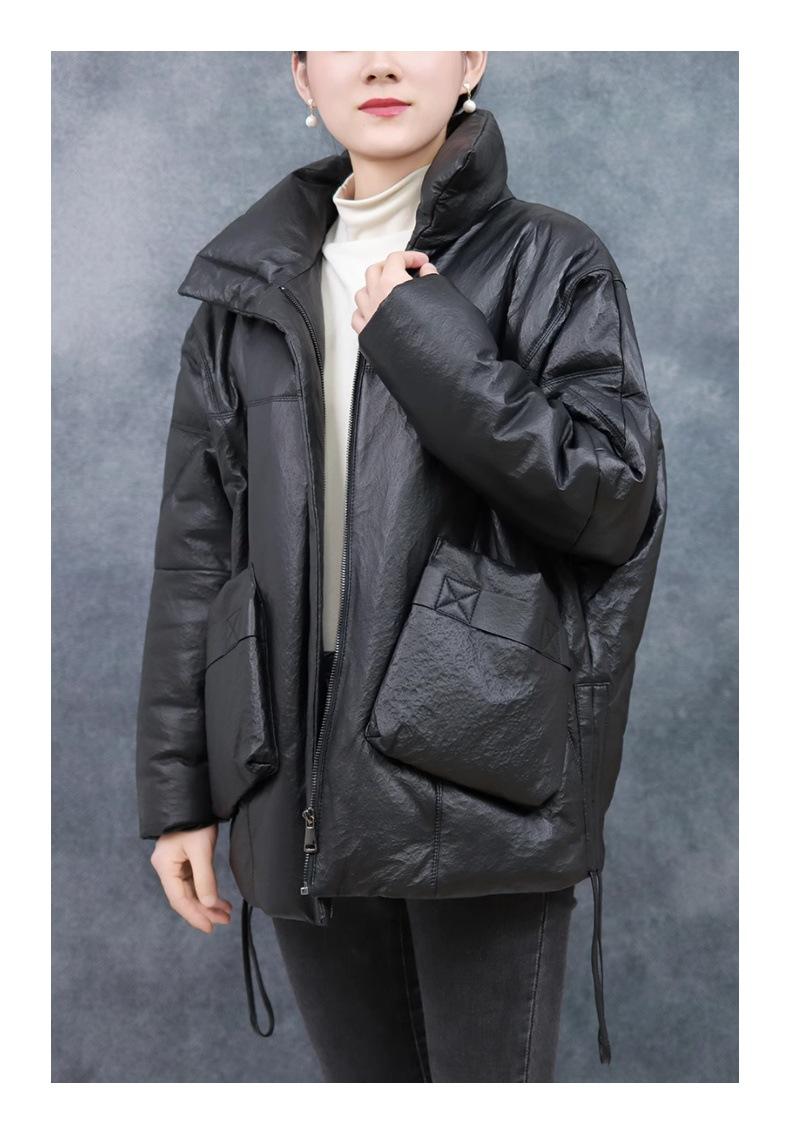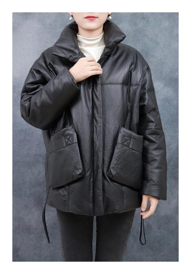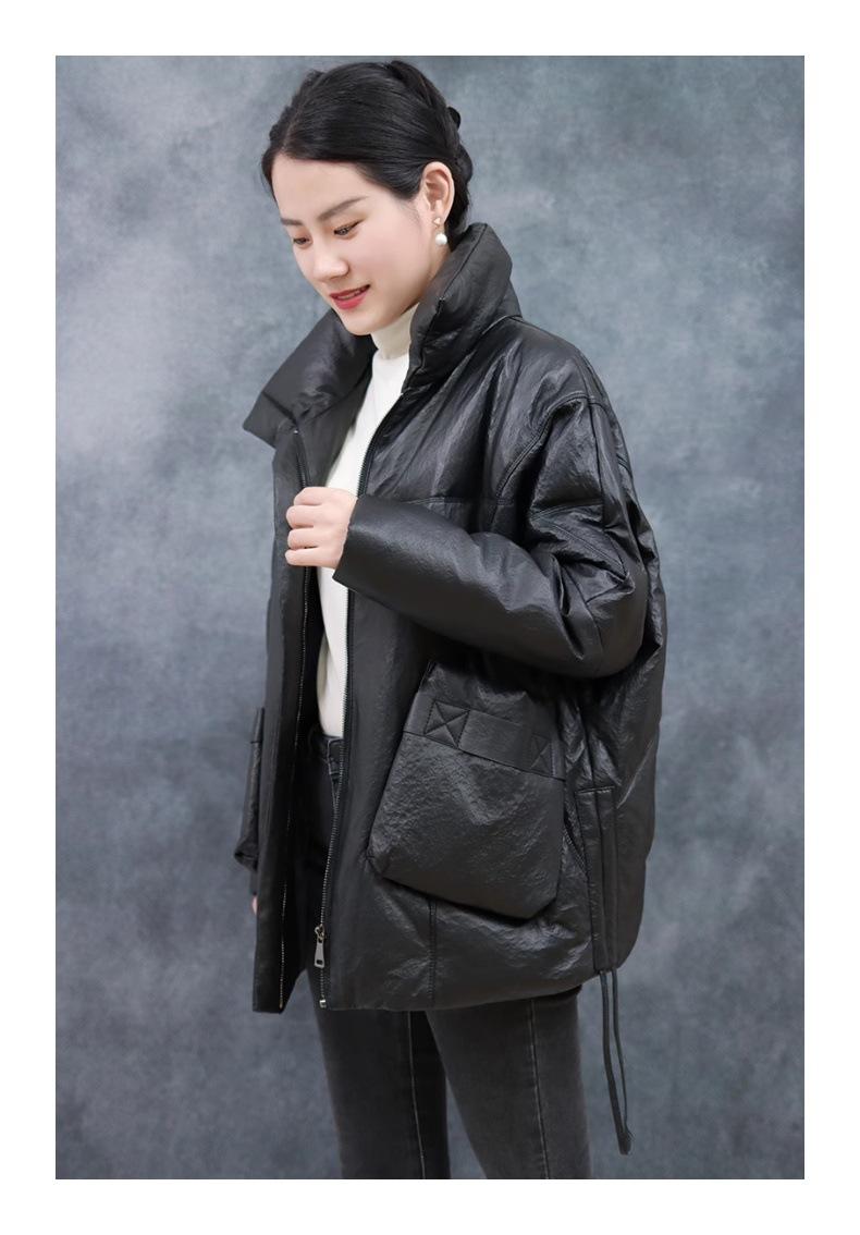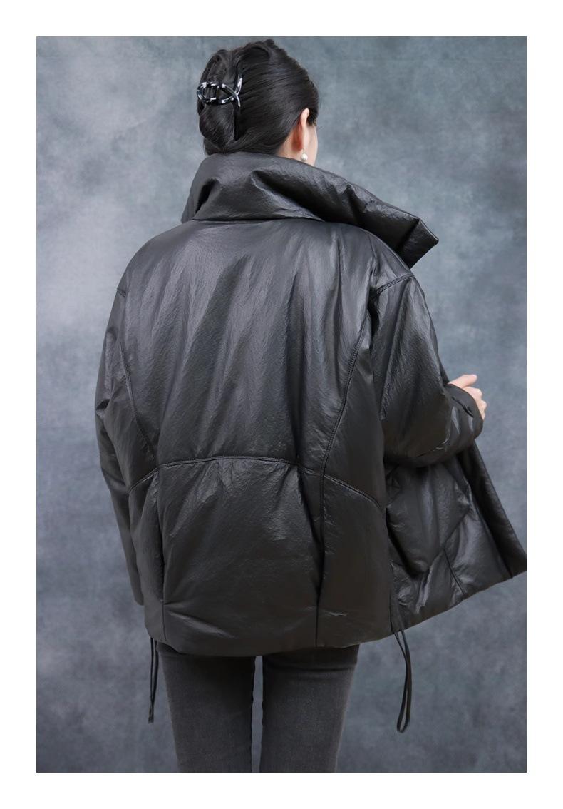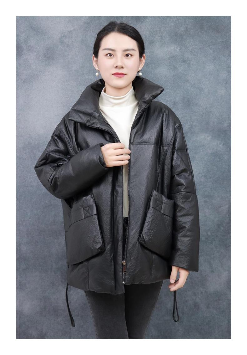 Chaqueta de Cuero de Piel de Oveja Genuina Nueva 2024 Haining para Mujer, Curtida Vegetal Completa, Largo Medio, Negra, Temperamental, Casual y Más Fácil de Combinar