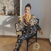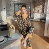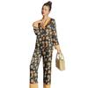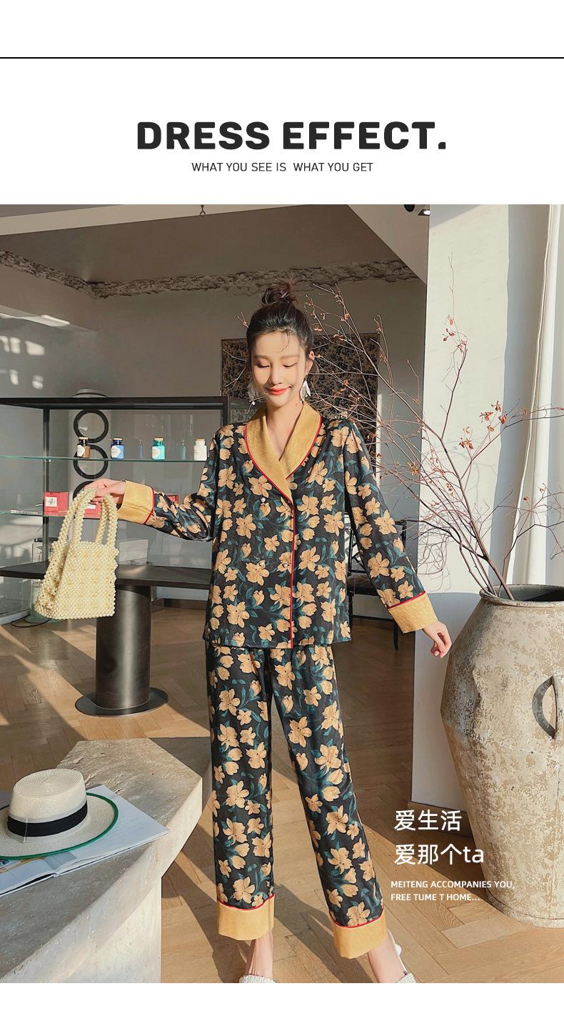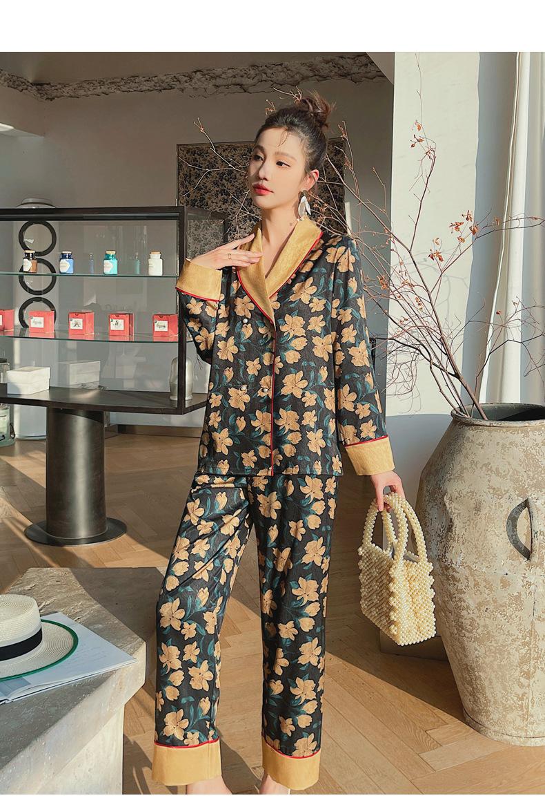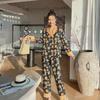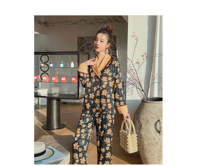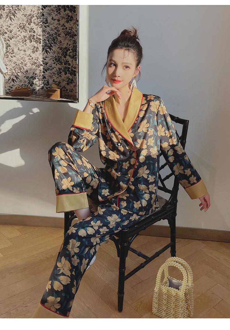 Pijamas de mujer de primavera y verano al por mayor de seda sintética de manga larga, cuello grande y fino con solapa, conjunto de ropa de casa de seda de moda para mujer