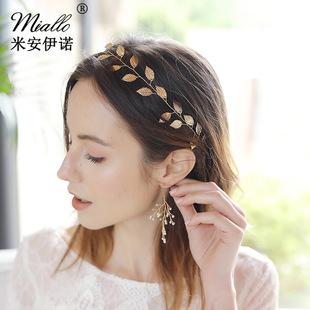 Accesorios nupciales sencillos de gran venta de Amazon, tocado de boda creativo europeo y americano, diadema de hoja dorada hecha a mano