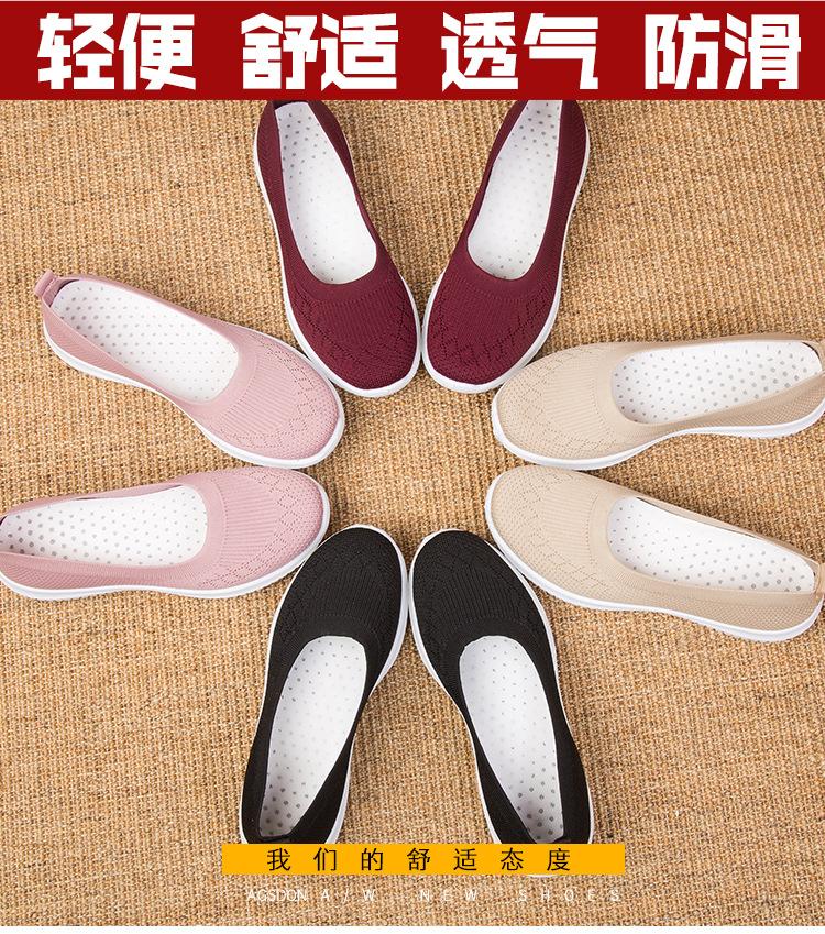 Zapatos planos para mujer, Nuevo estilo transfronterizo, Zapatos para madres de mediana edad y ancianas, Zapatos de tela de Pekín antiguos, Zapatos ligeros de malla