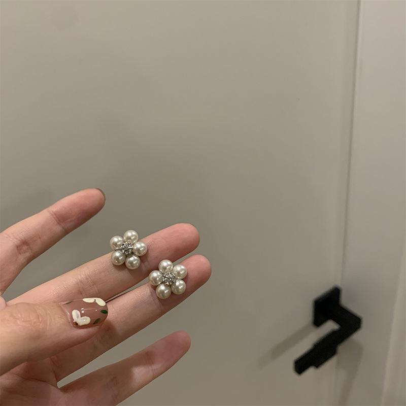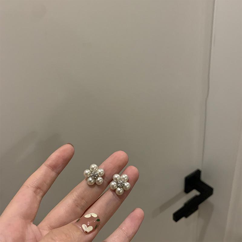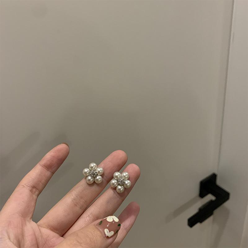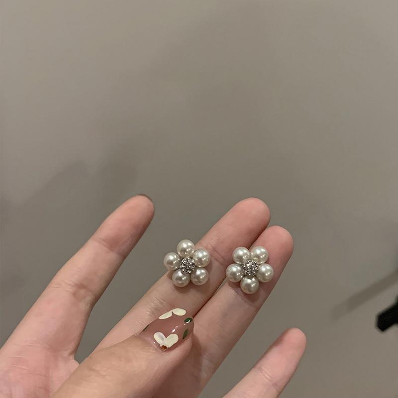 Pendientes de perlas y flores vintage de estilo francés para mujer, nuevos pendientes de temperamento rojo de moda 2023, venta al por mayor