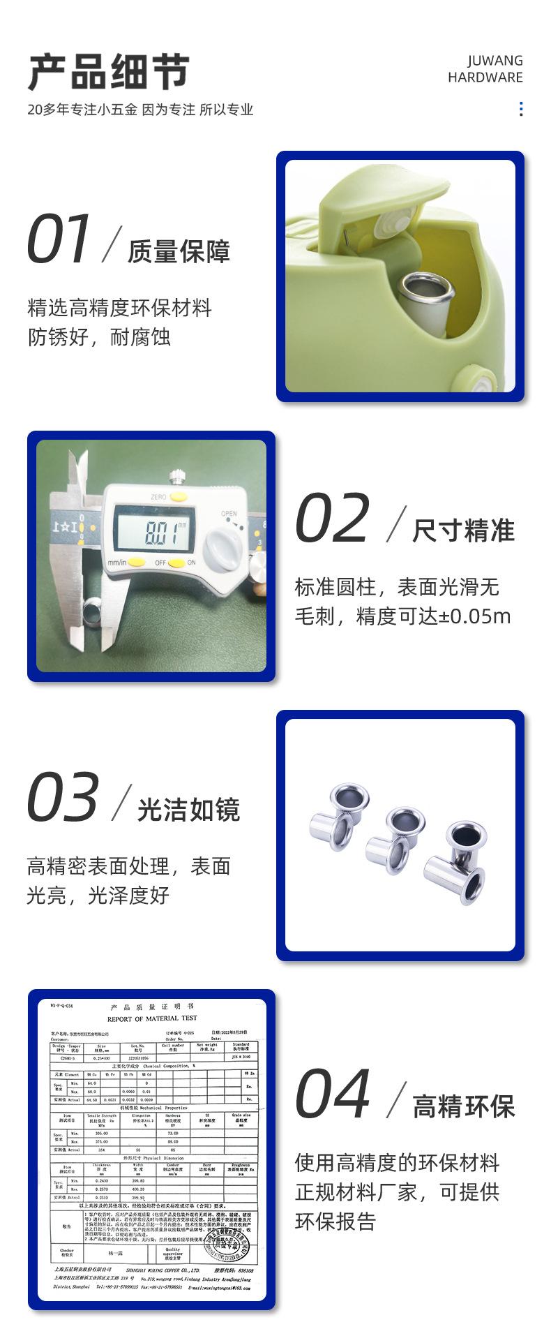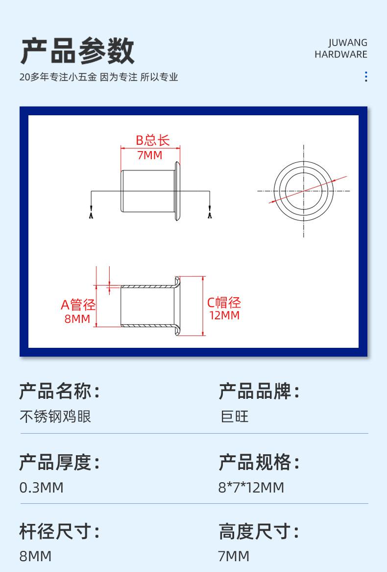 Bienvenido a enviarnos dibujos y muestras para consulta y personalización de diferentes especificaciones de ojales de acero inoxidable 304, ojales no estándar de acero inoxidable 316 y ojales de acero inoxidable.