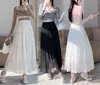 Falda de color liso para mujer, primavera 2024, nueva, elegante, versátil, hecha a mano, plisada, elástica, de longitud media, plisada, de línea A.