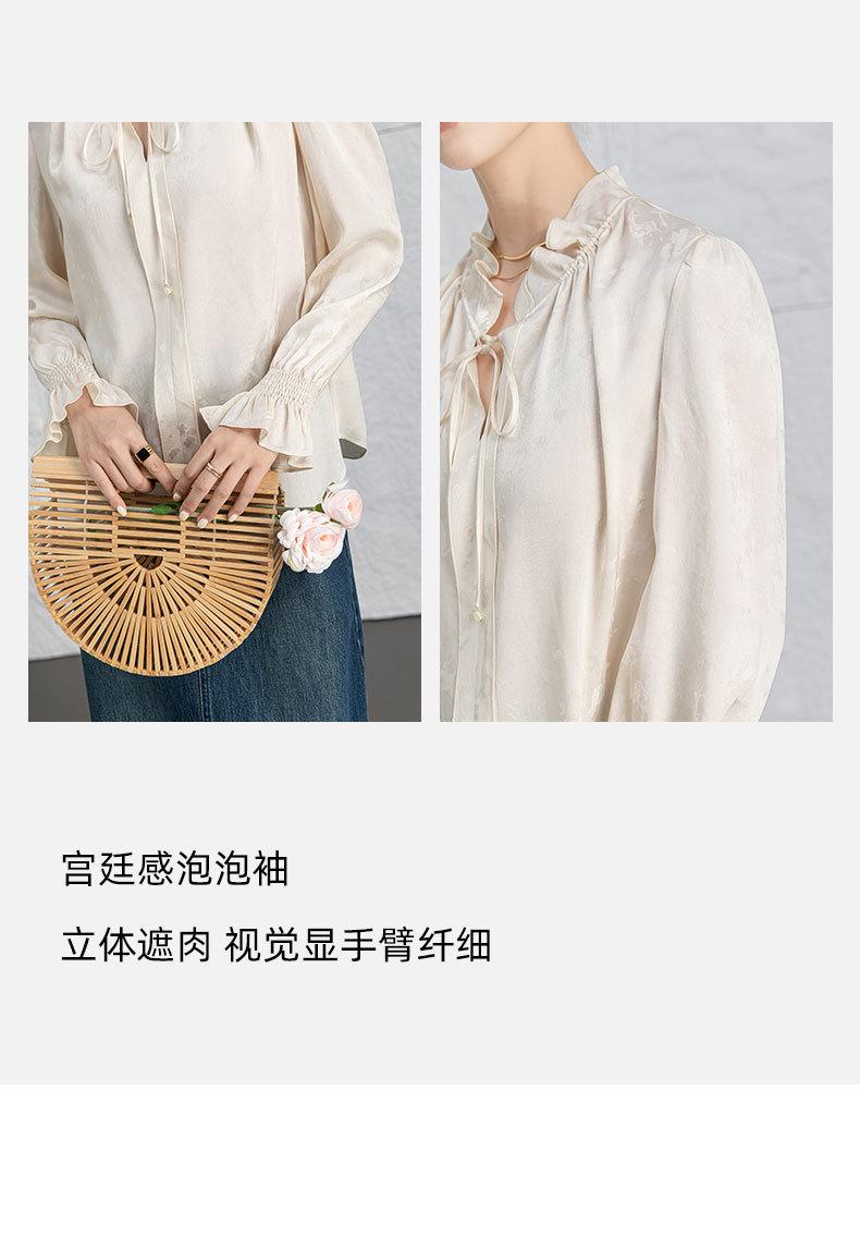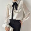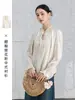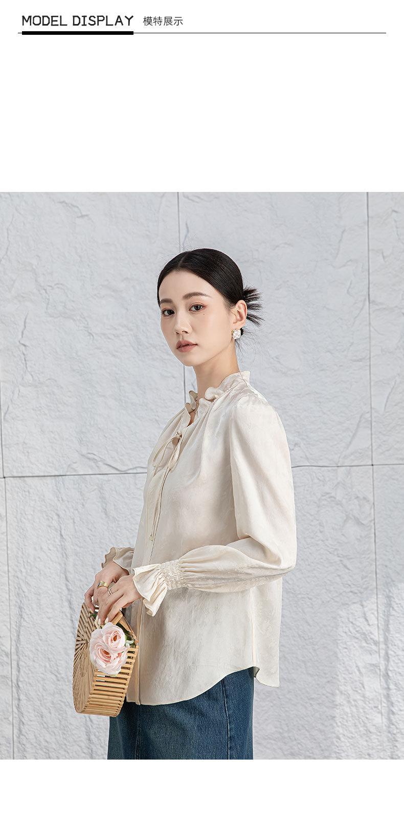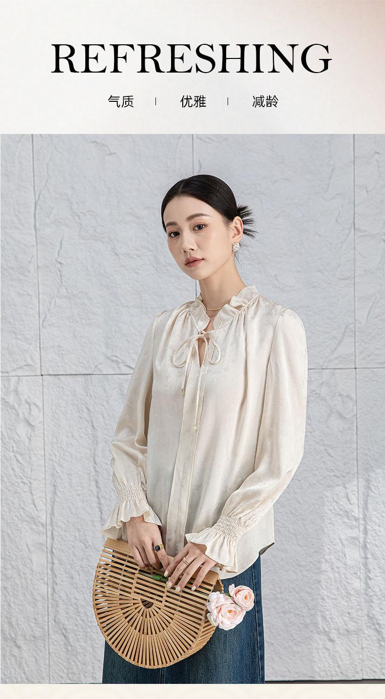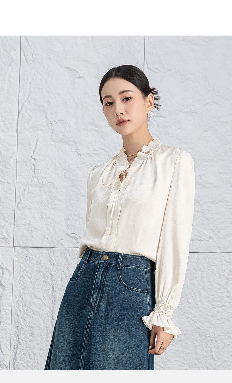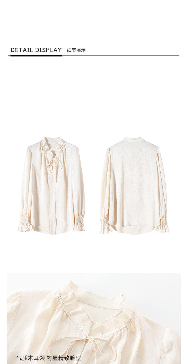 Camisa Xingge de Encaje con Cordones Estilo Corte Francés de Manga Larga, Nuevo Top de Acetato Adelgazante con Cuello en V Jacquard Vintage