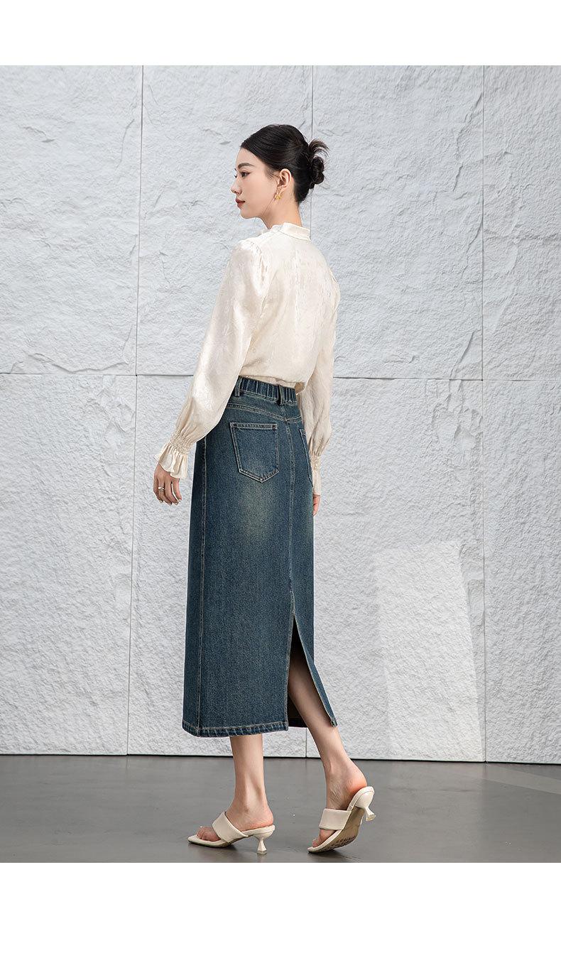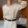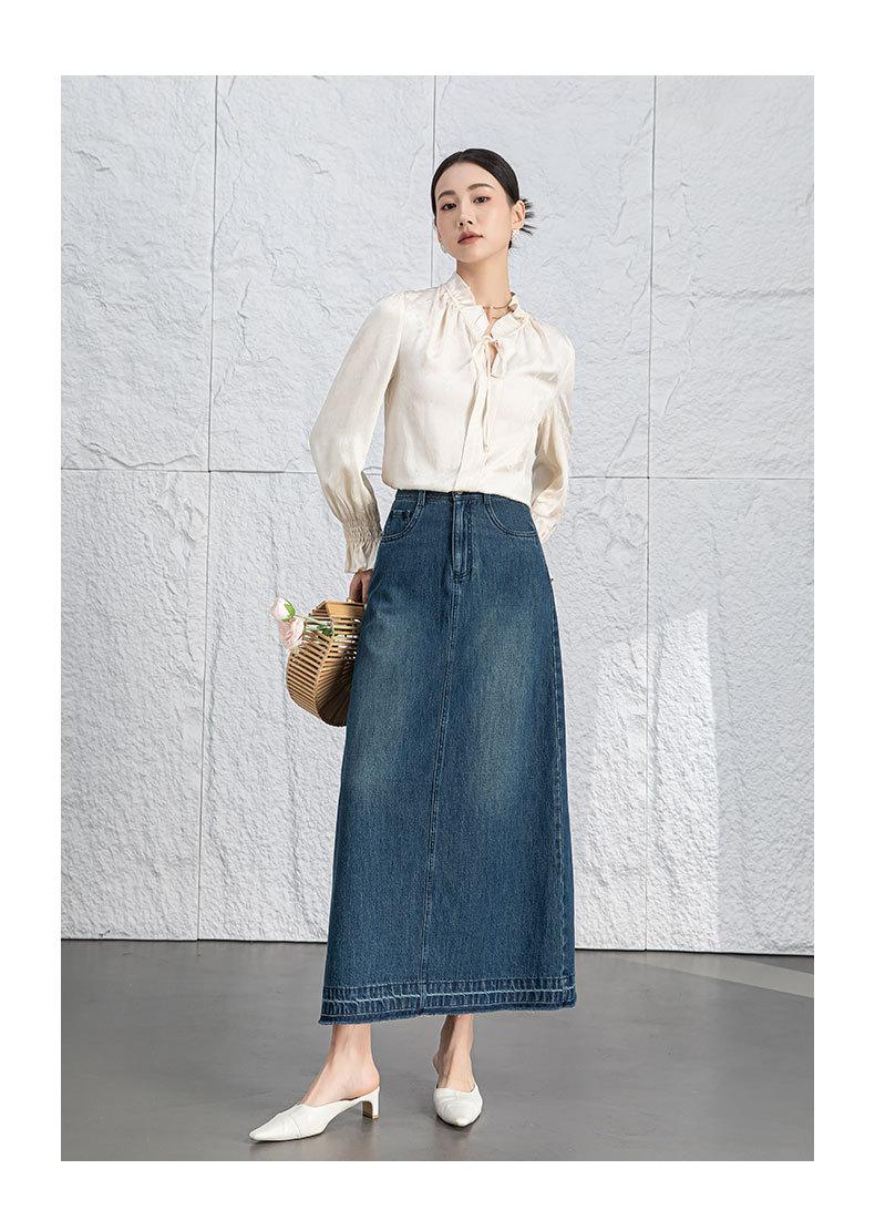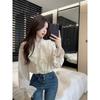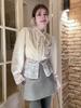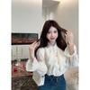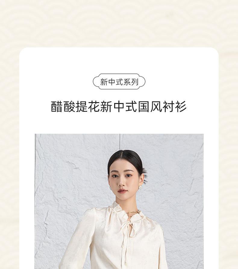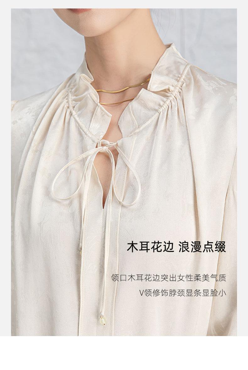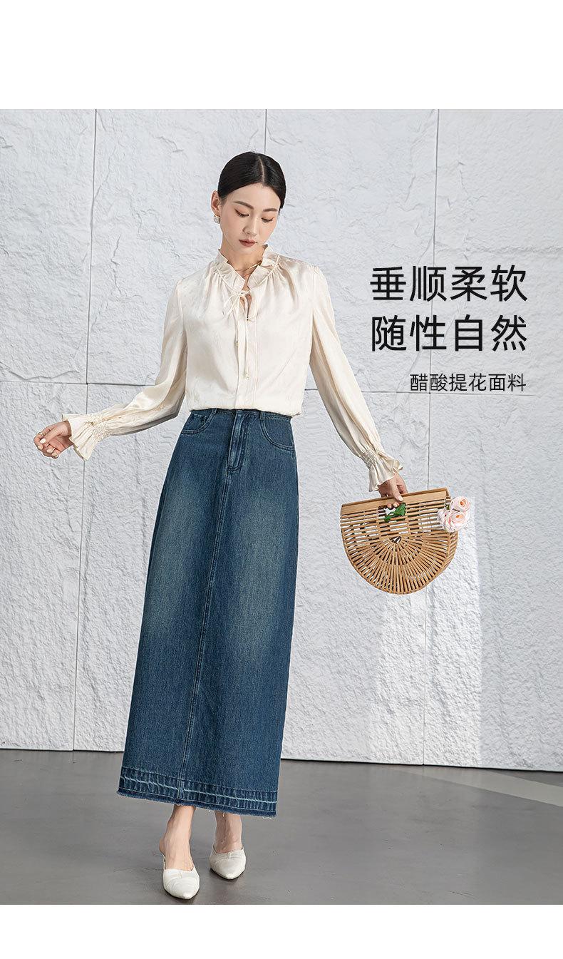 Camisa Xingge de Encaje con Cordones Estilo Corte Francés de Manga Larga, Nuevo Top de Acetato Adelgazante con Cuello en V Jacquard Vintage