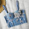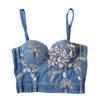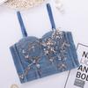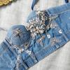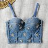 Pedido mezclilla de industria pesada clavo perla cabestrillo europeo y americano modelador de cuerpo top umbilical sexy chica caliente escenario espina de pescado pecho mujeres verano