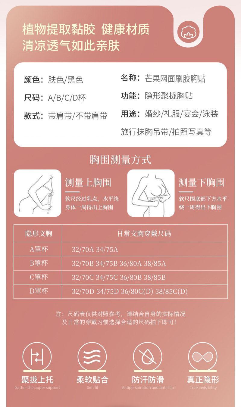 Cepillo de mano, pegatinas de plástico para el pecho, pegatinas para el pecho, malla de mango, copa de mango, cepillo para sujetador, pegamento, pegatinas invisibles para sujetador, nueva ropa interior transpirable
