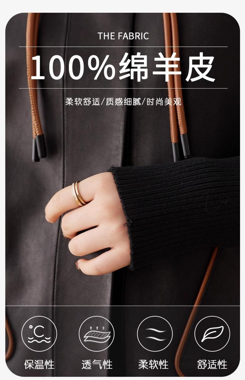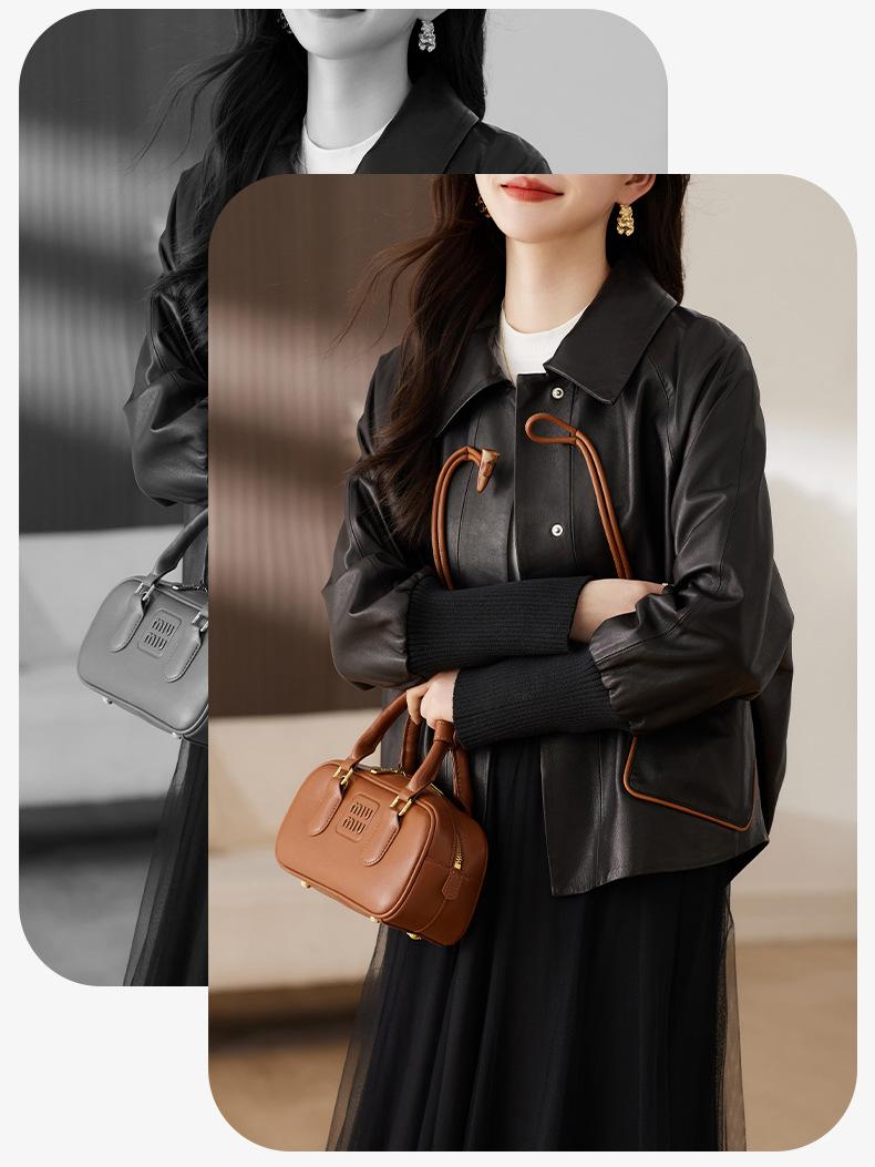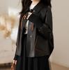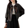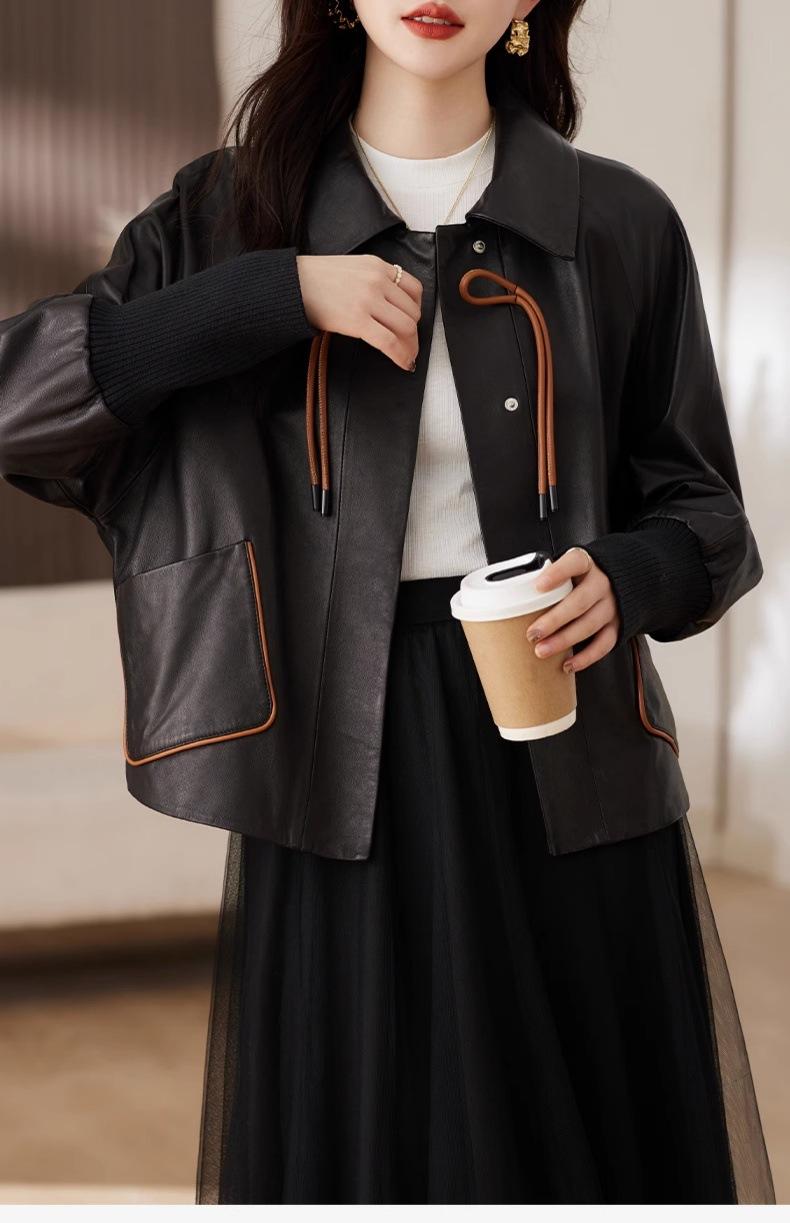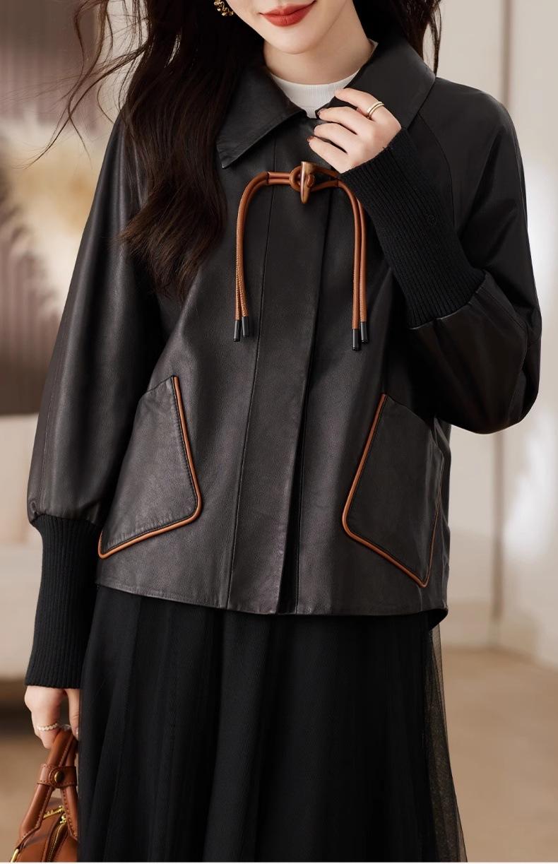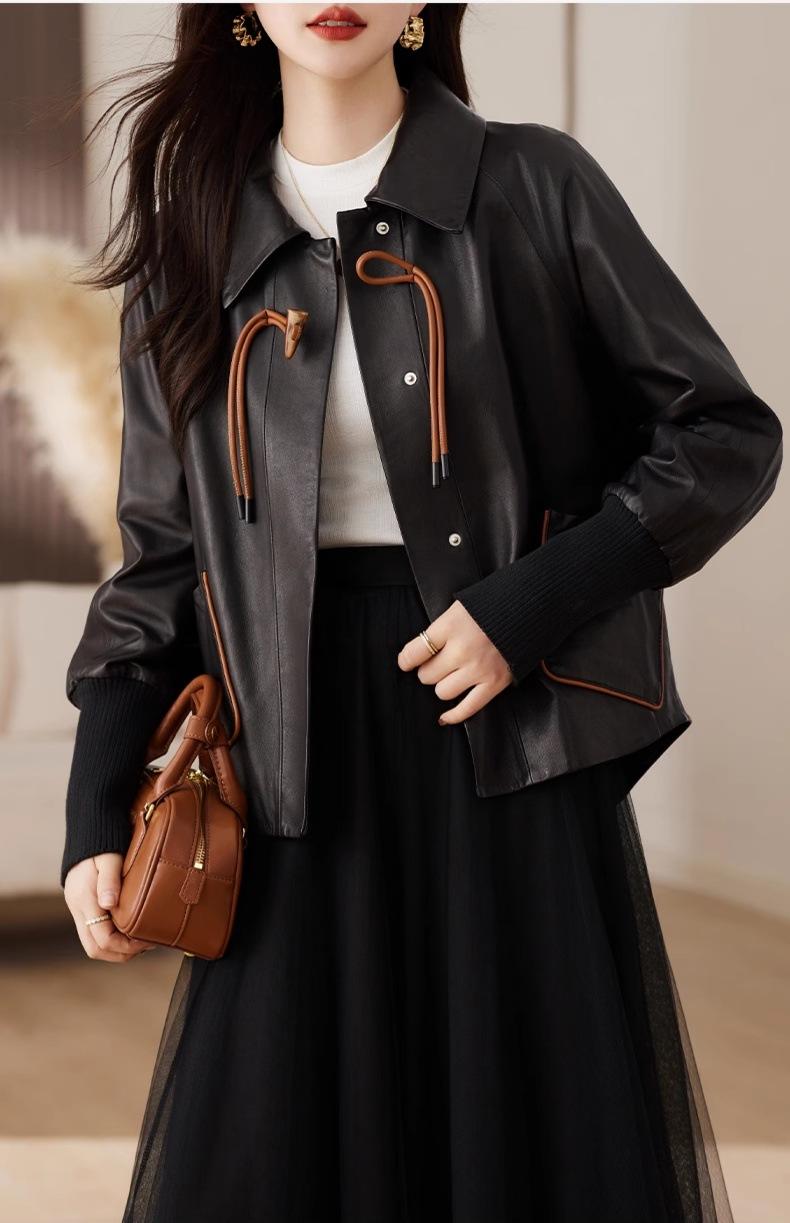 2025 Primavera y Otoño Nueva Chaqueta de Cuero Genuino Estilo Nacional para Mujer Chaqueta Holgada de Piel de Oveja Chaqueta Negra Corta con Solapa a la Moda
