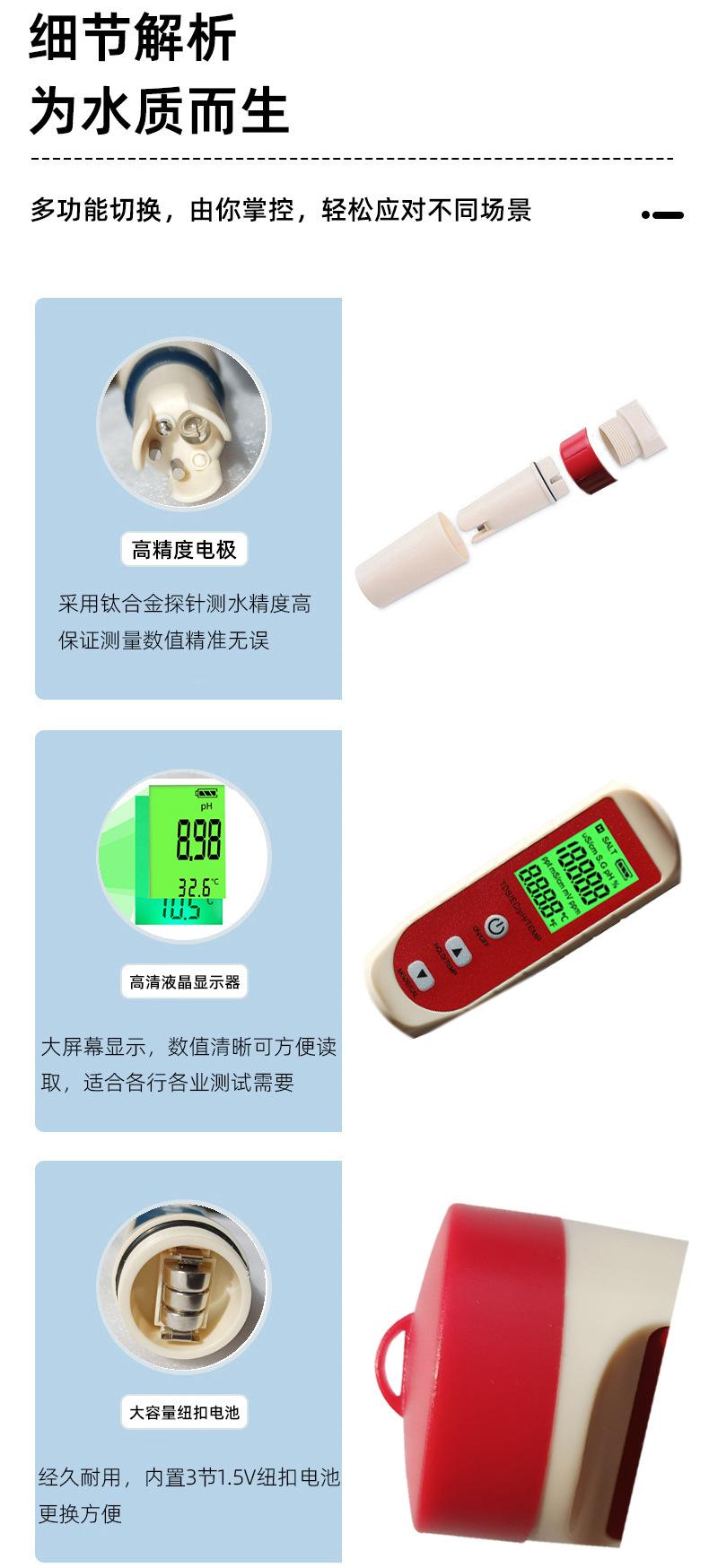 Acerca de los productos:Por defecto, todos los productos vienen en embalaje neutro sin ninguna información de fábrica ni de marca. Nuestra empresa se ha centrado en las pruebas de calidad del agua durante muchos años. Los productos son elegantes y bonitos, de rendimiento fiable y de excelente calidad. ¡Por favor, haga su pedido con confianza!