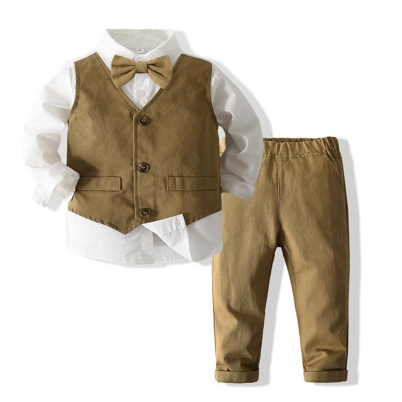 Ropa infantil de comercio exterior de gran venta en Europa y América de Amazon, nuevo estilo de primavera, camisa de manga larga para niños y caballeros, chaleco, pantalones, traje de tres piezas