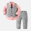 Suministro transfronterizo de primavera, nueva ropa para niños de marcas europeas y americanas, trajes para niños, camisa, chaleco de caballero, pajarita, conjunto de varias piezas