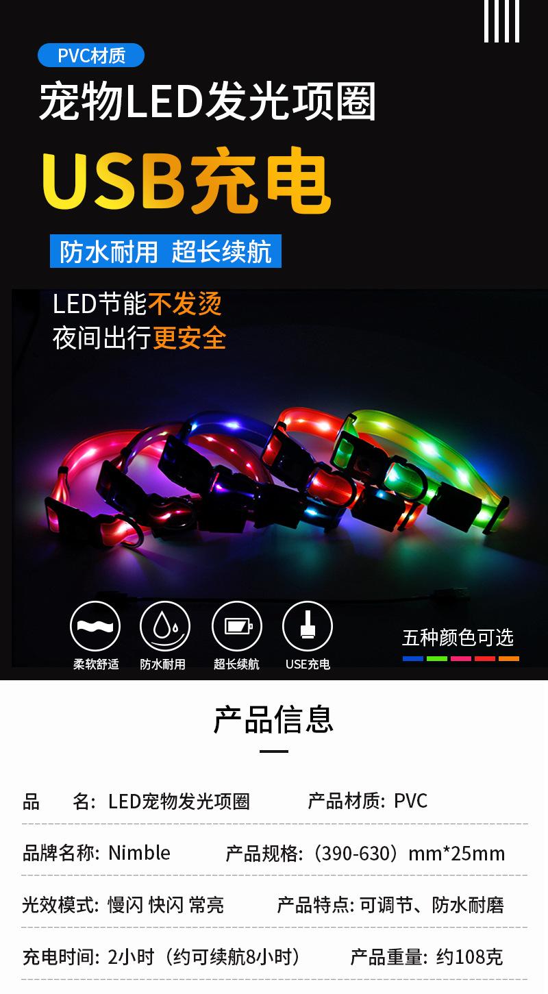 Características: Este collar se puede cargar usando el cable de carga con interfaz UBS incluido. Puede brillar continuamente durante decenas de horas cuando está completamente cargado. Los modos de iluminación incluyen streamer, flash y flash lento. Es impermeable, resistente a la suciedad, fácil de limpiar y ajustable. El LED también puede funcionar normalmente cuando el perro lo usa para jugar en el agua. Si el collar está sucio, se puede enjuagar con agua limpia y volverá a lucir como nuevo. Esto es inigualable por muchos collares similares.