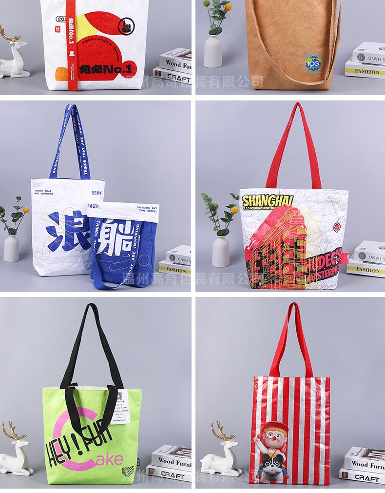 Bolsa de papel DuPont personalizada lavable bolsa de papel kraft impermeable bolso de mano de papel DuPont bolsa de regalo bolsa ecológica personalizada