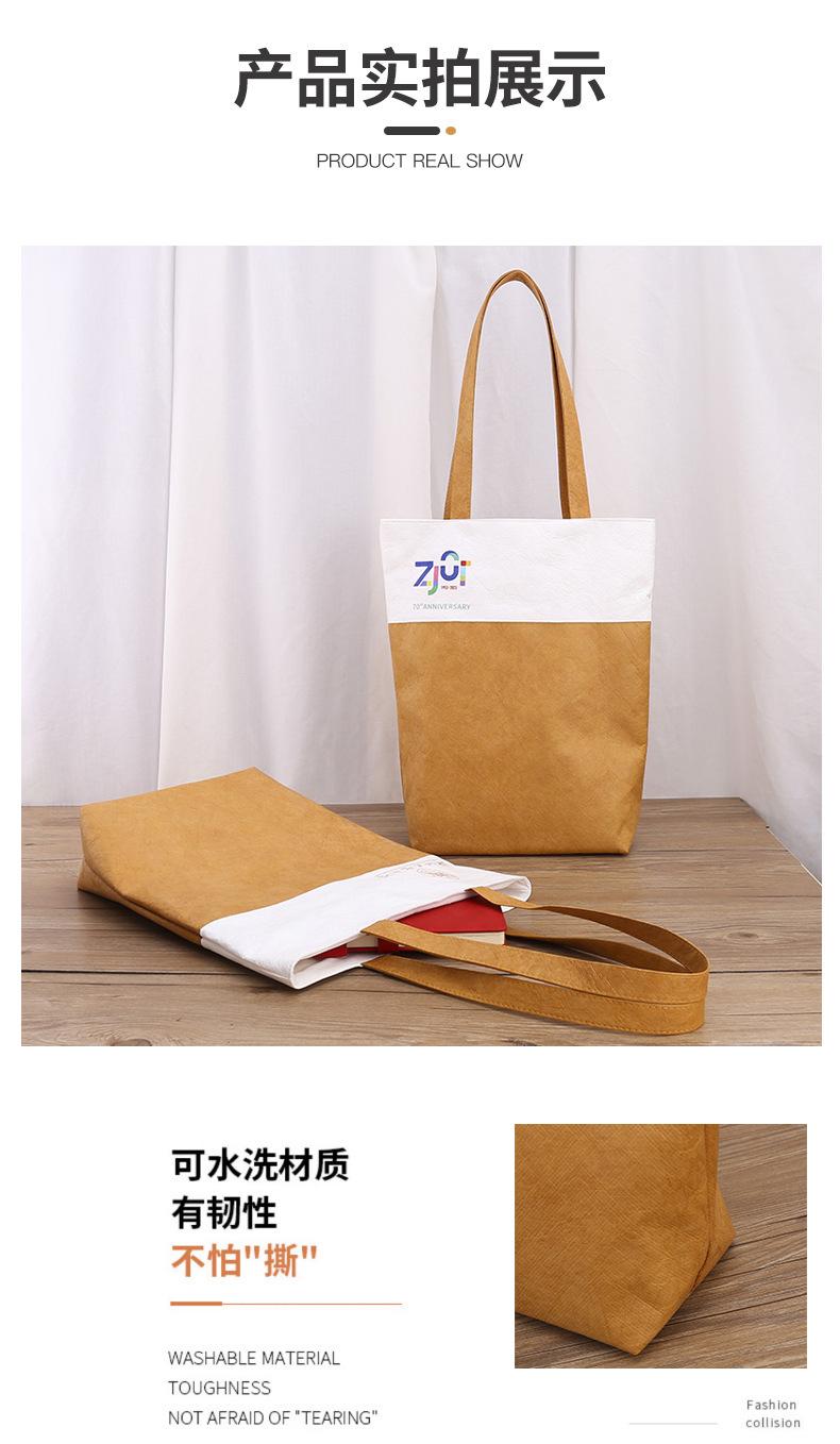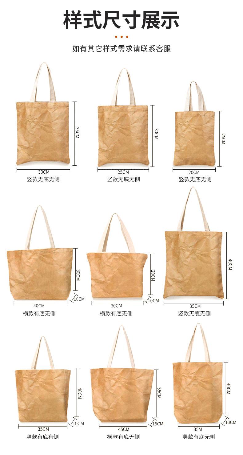 Bolsa de papel DuPont impermeable, personalizada, resistente al desgarro, bolsa de papel Kraft lavada, patrón de amasado, bolsa de papel DuPont