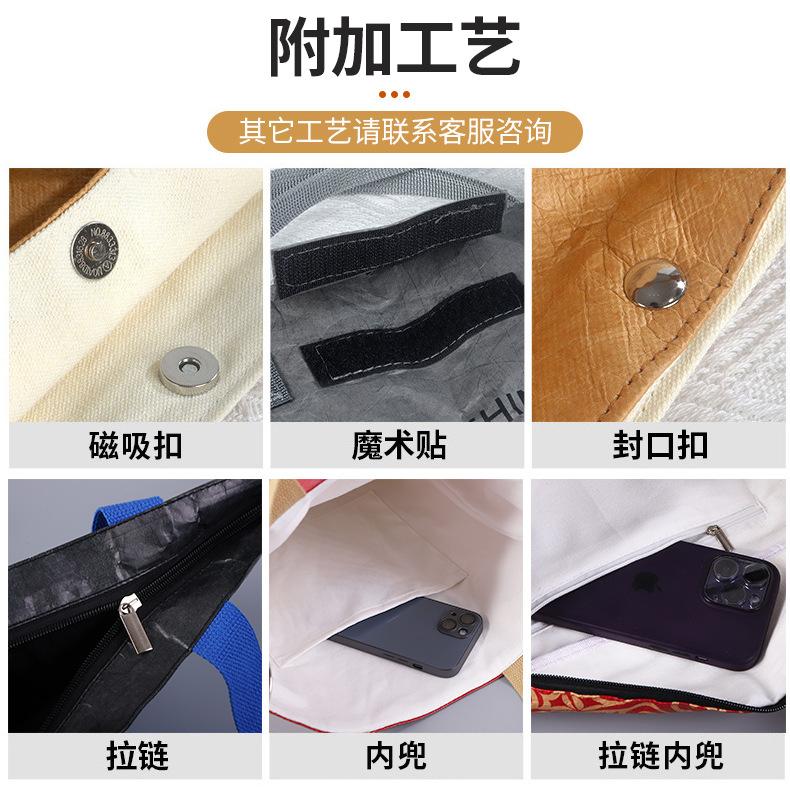 Bolsa de papel DuPont impermeable con logo personalizado Bolso de mano de papel DuPont respetuoso con el medio ambiente Bolsa de mensajero de papel kraft Bolsa de papel DuPont hecha a medida