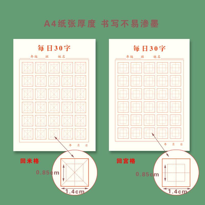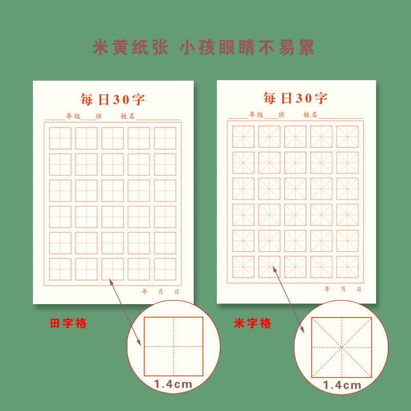 Papel de práctica de caligrafía con pluma dura para alumnos Pasta de práctica de caligrafía con pluma para niños Libro de práctica de caligrafía Tian Zige Mi Zige de 30 caracteres diarios