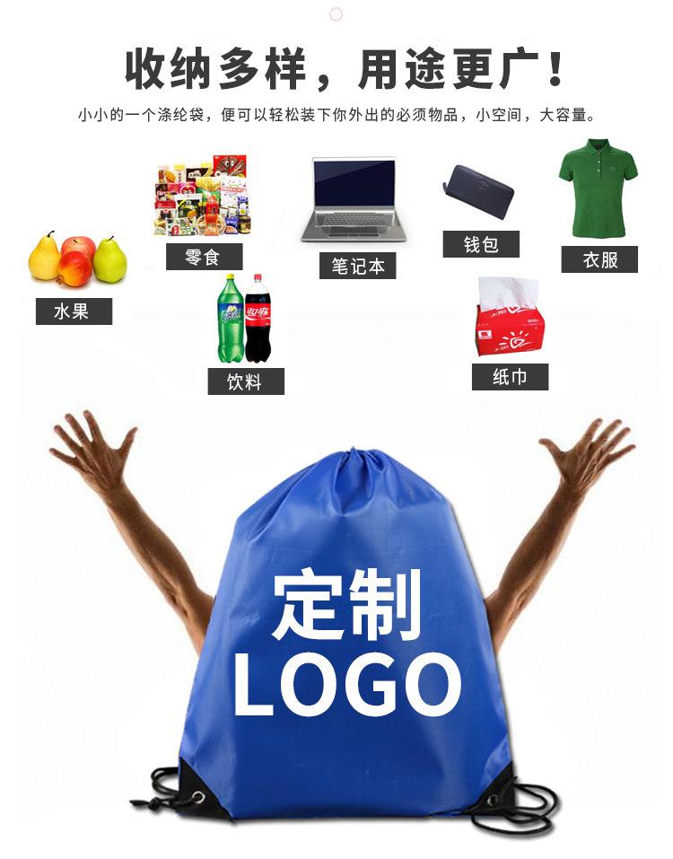 Mochila con cordón ajustable de nailon 210D, resistente al agua, para compras, de tela, con bolsillo de poliéster y cordón ajustable, personalizada