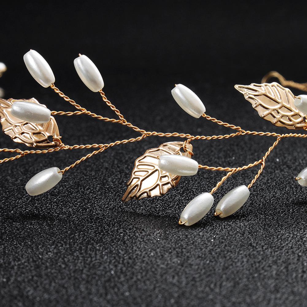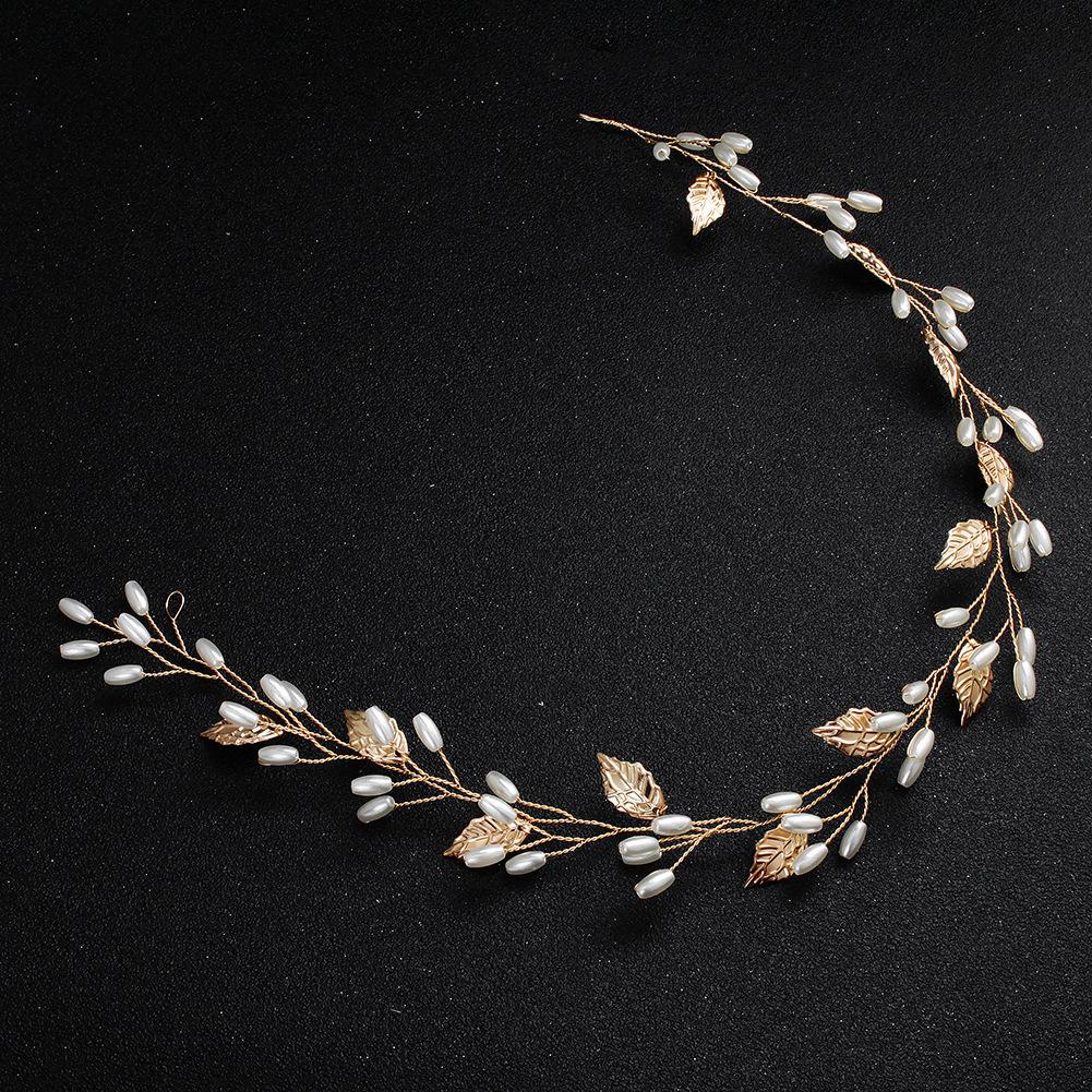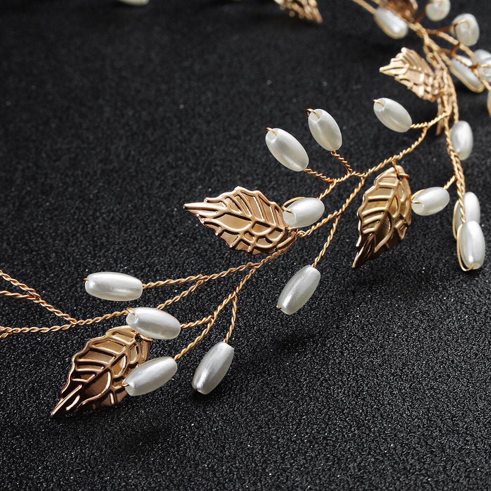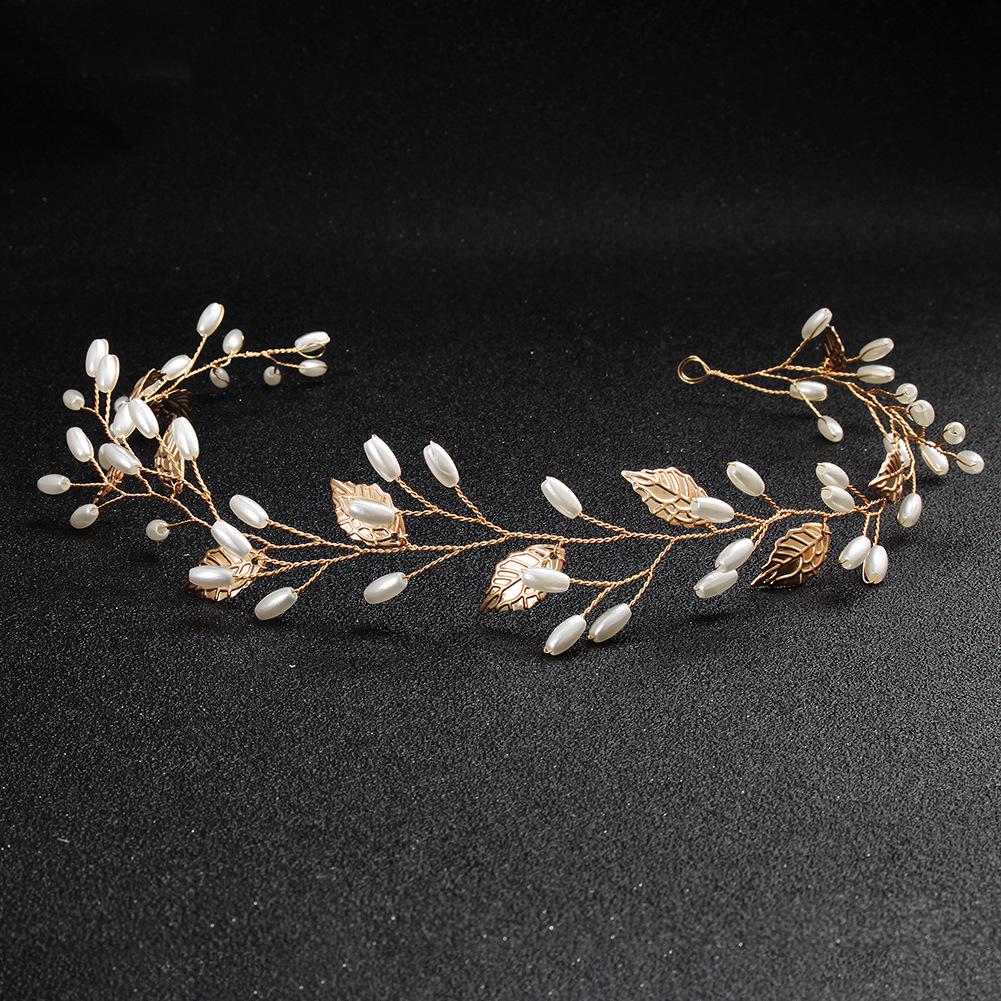 Diadema de novia trenzada con perlas y hojas de aleación sencilla europea y americana, accesorios para peinados de banquetes de boda, torcido para el cabello |