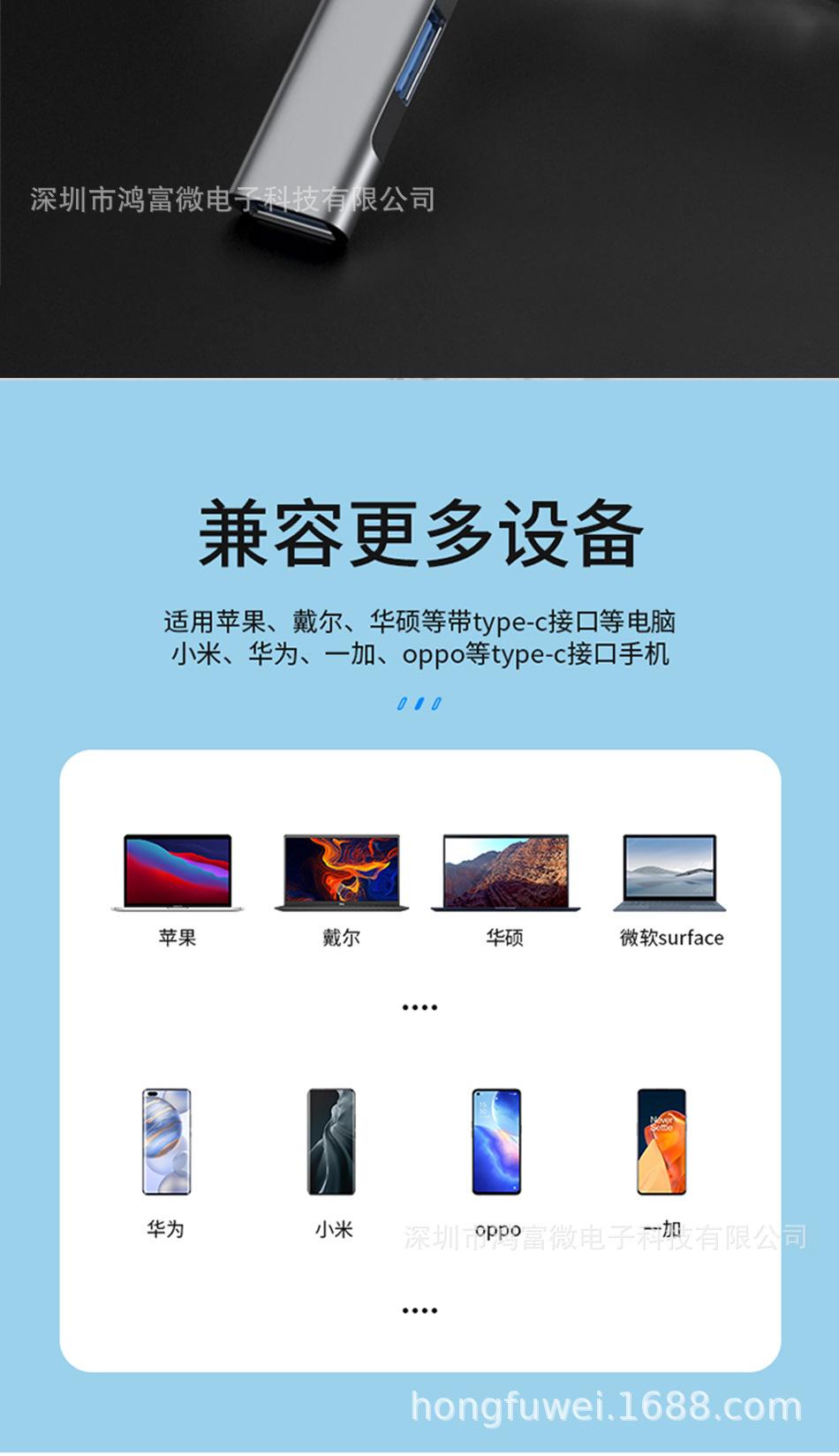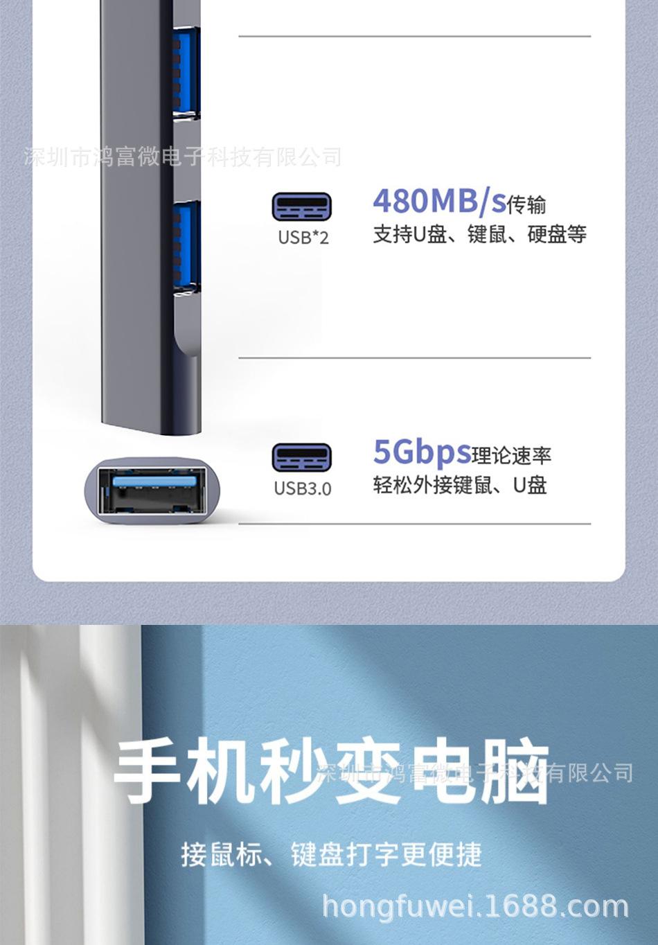 One-to-five 2type-c expansion dock Silver, One drag five 2type-C expansion dock Gray