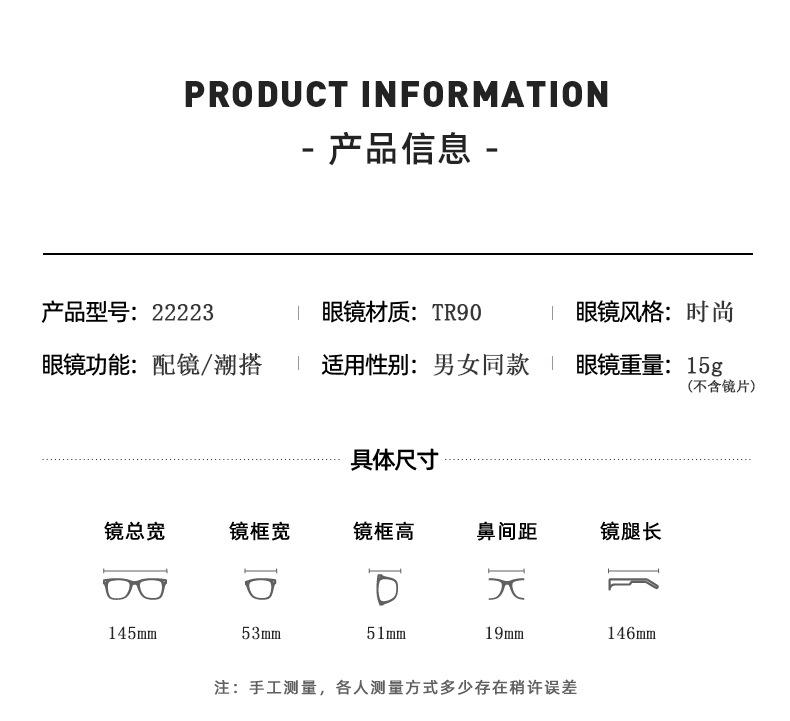 Todos los productos de Yishi Glasses están disponibles al por mayor, así que puede tomar fotos con confianza. La información sobre productos temporalmente agotados se indicará en la imagen del producto. Si se produce una situación de agotamiento ocasional y es demasiado tarde para actualizarla, le garantizamos que nos pondremos en contacto con usted por teléfono o en persona con Wangwang a la brevedad y lo solucionaremos tras obtener su consentimiento. Le agradecemos su comprensión.
