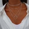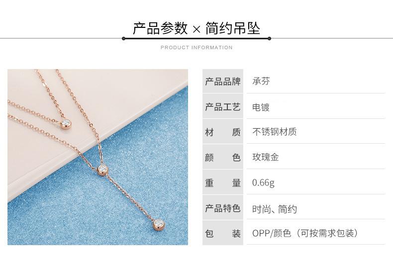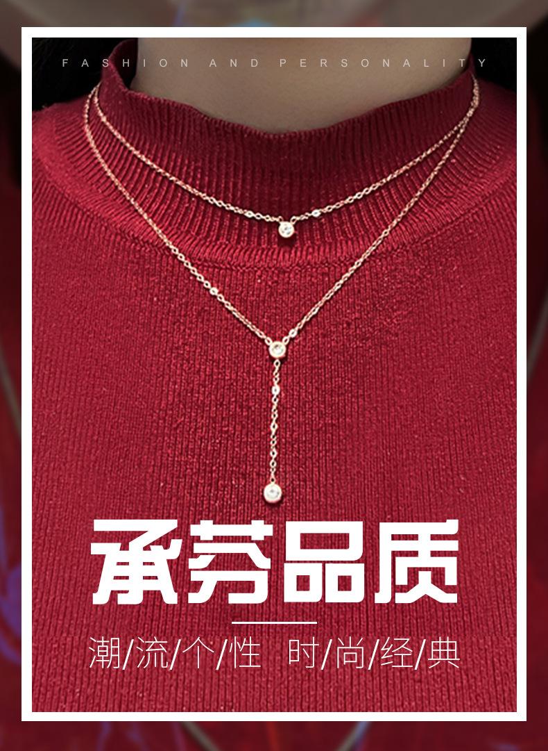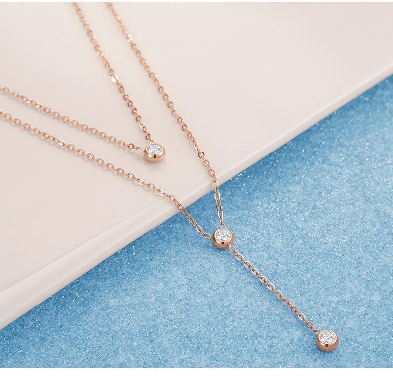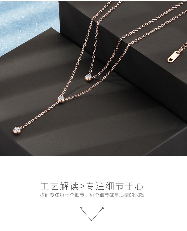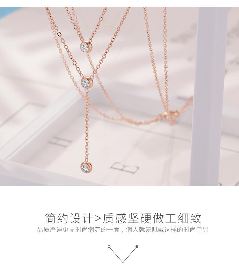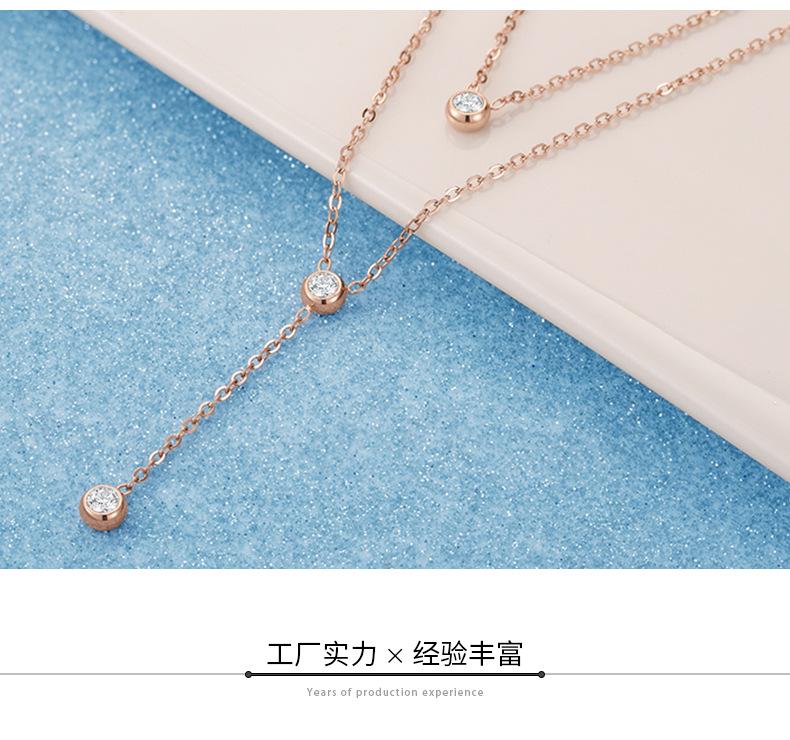 Colgante de acero inoxidable redondo con tres diamantes de moda Wish Explosions, elegante cadena de doble capa con cadena de clavícula de oro rosa.