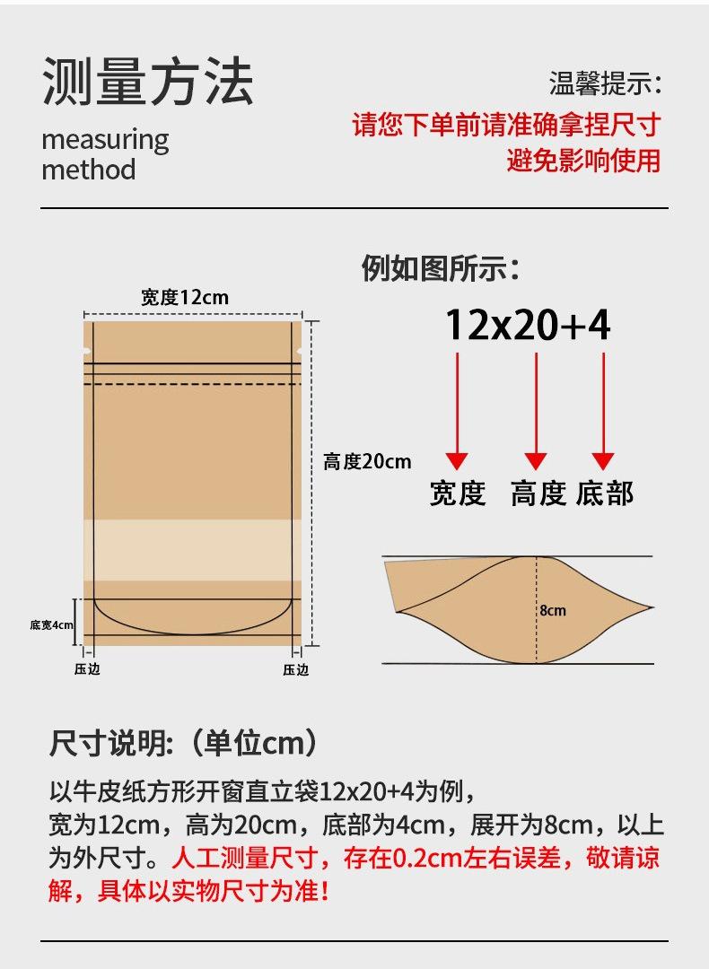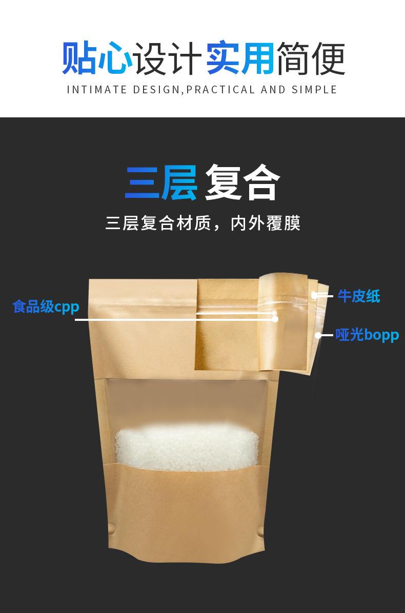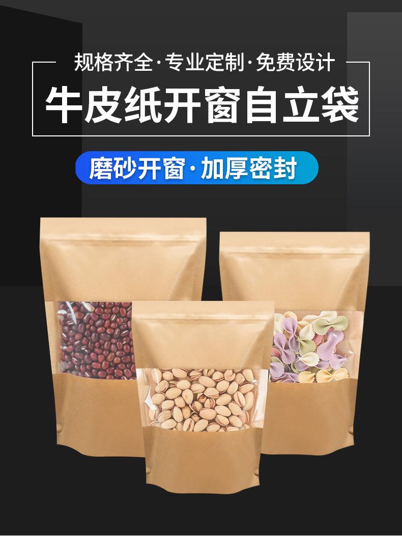 Bolsa Stand-Up de Papel Kraft Impermeable para Ventana de Fabricante Bolsa Ziplock para Té Semillas de Melón Res Seca Snack Alimento Bolsa de Embalaje
