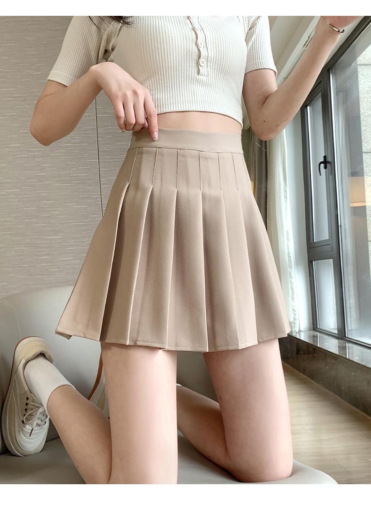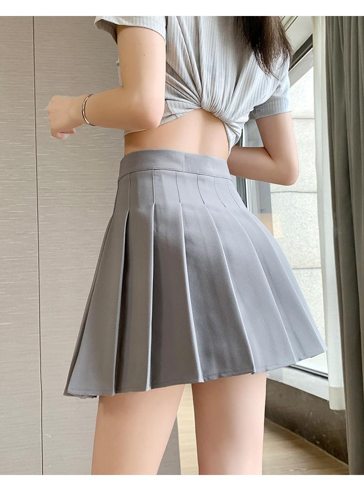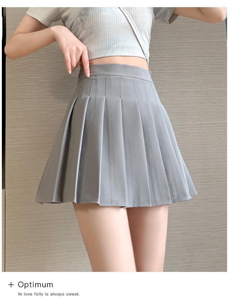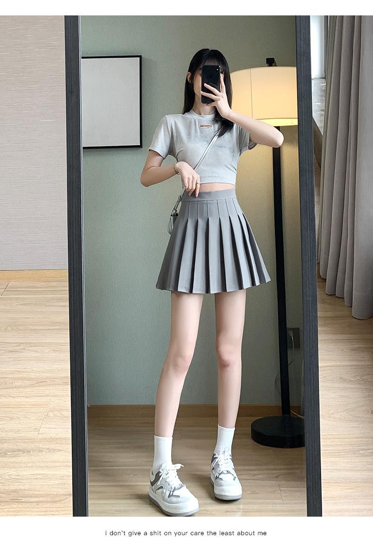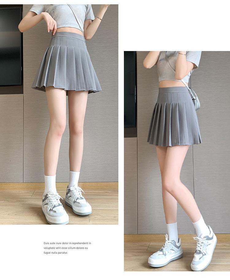 Falda Plisada Mayoreo Mujer 2025 Verano Falda Gris Oscuro Falda Cintura Alta Estilo Preppy Estudiante Falda Corta Versátil