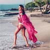 Vestido tipo cárdigan con estampado de gasa roja y rosa transfronteriza, para playa, con protección solar, para comercio exterior