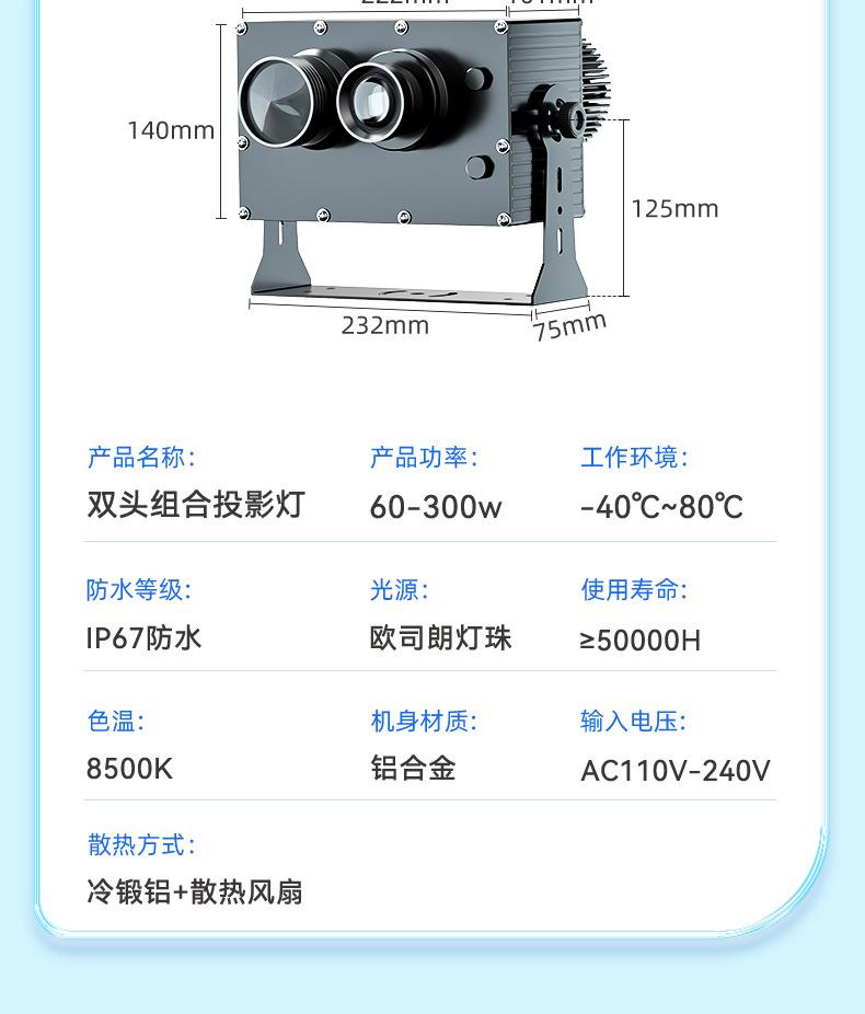 Lámpara de proyección de ondas de agua, lámpara de proyección dinámica de patrón de agua, ambiente de olas, foco de doble cabezal, lámpara de publicidad exterior con logo