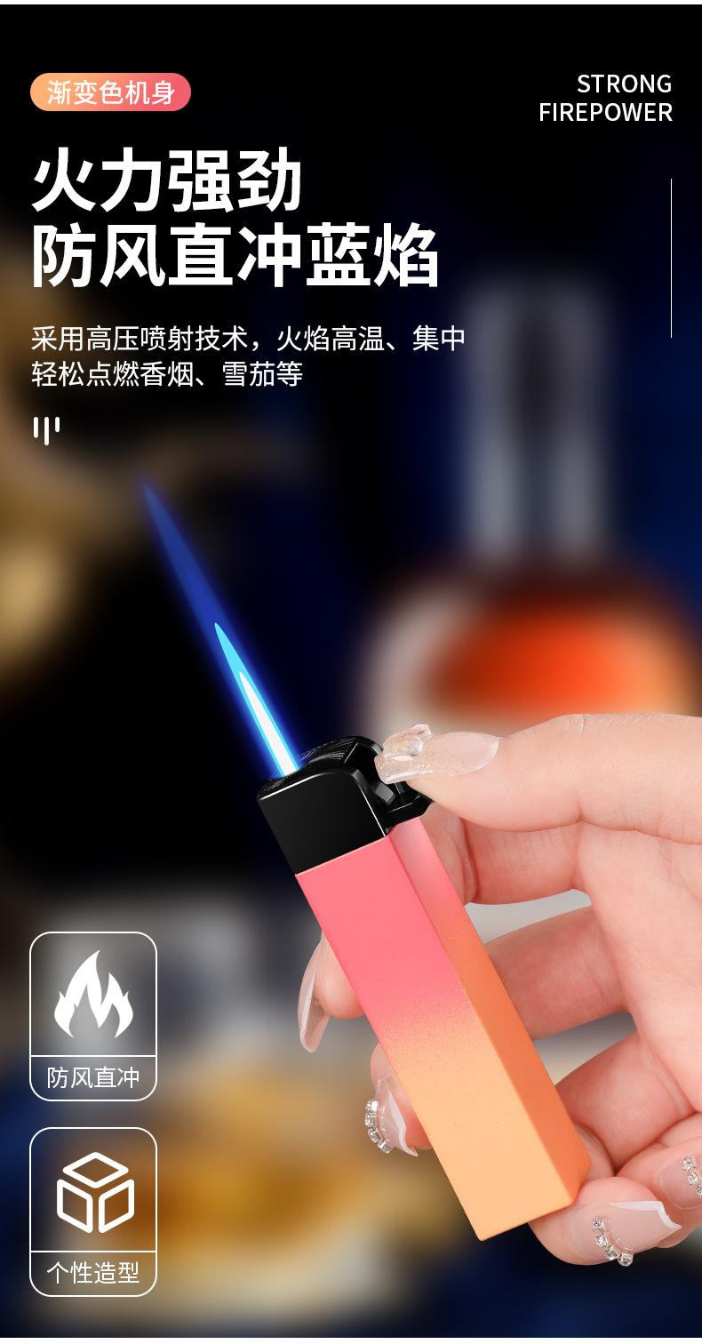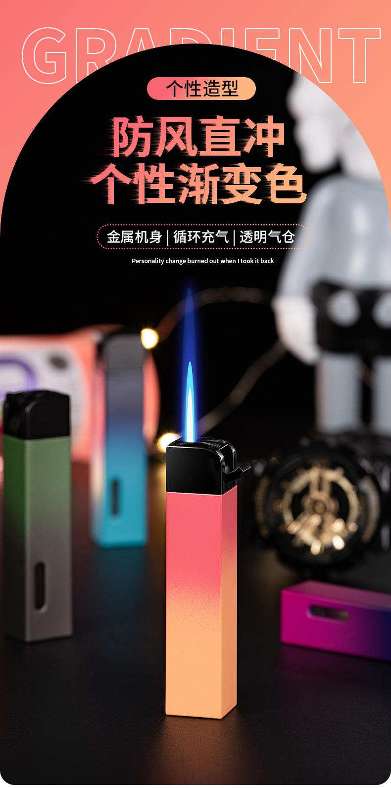 Encendedor Inflable Personalizado Creativo a Prueba de Viento para Hombres, Llama Azul Degradada de Moda, Regalo para Novio, Estilo Trendy de Lujo Ligero