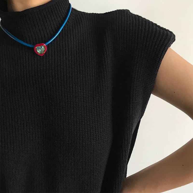 Nuevo Diseño Nicho Dulce Cool Hip Hop Cuerda de Cuero Amor Gota de Agua Collar Corto Cadena de Collar Lujo Ligero Cadena de Collar Corta