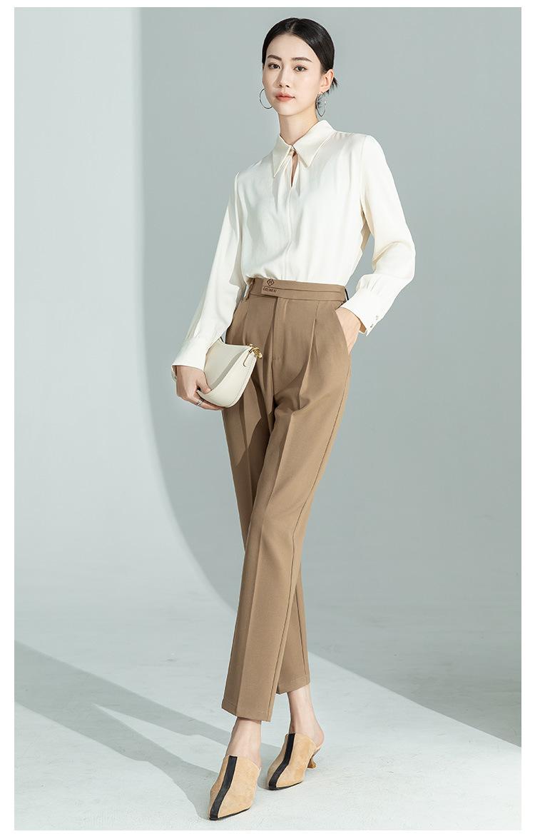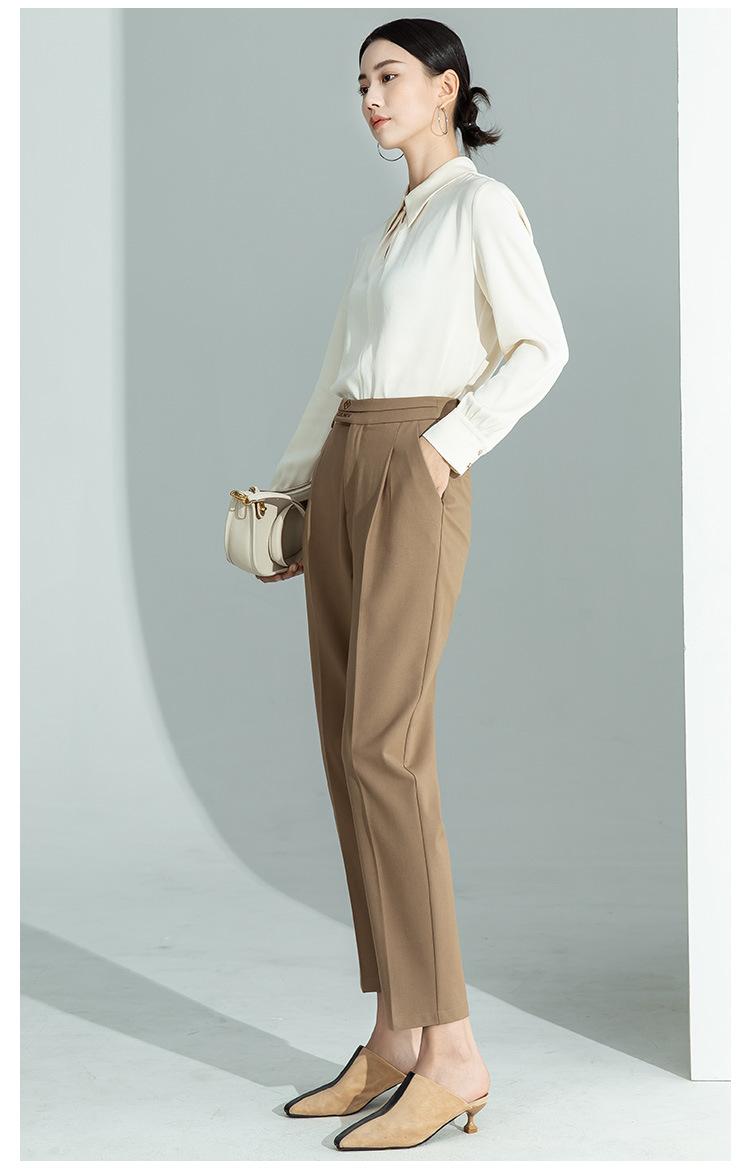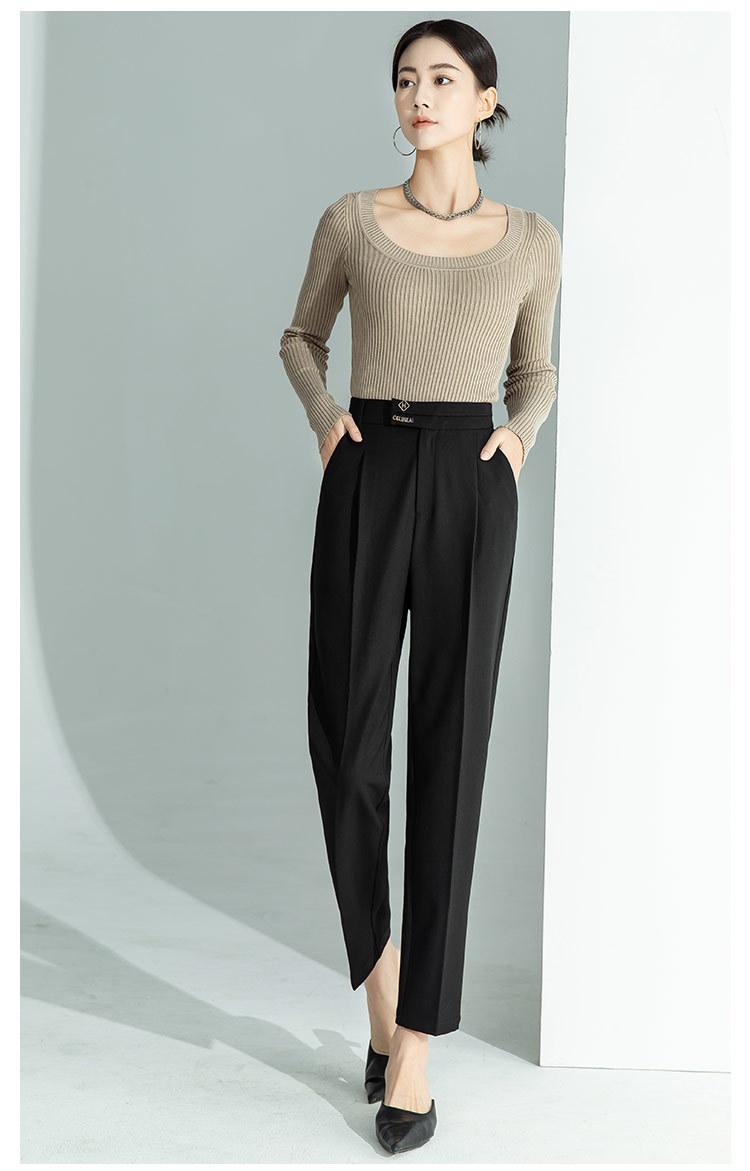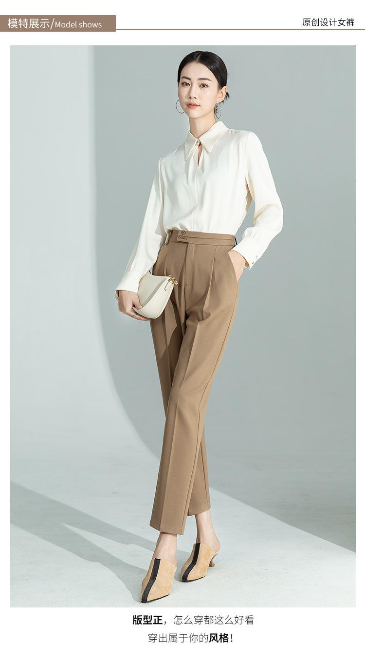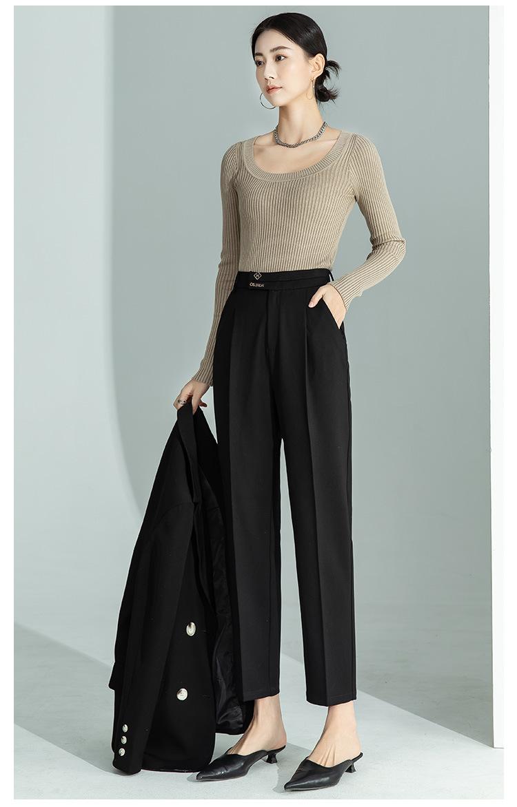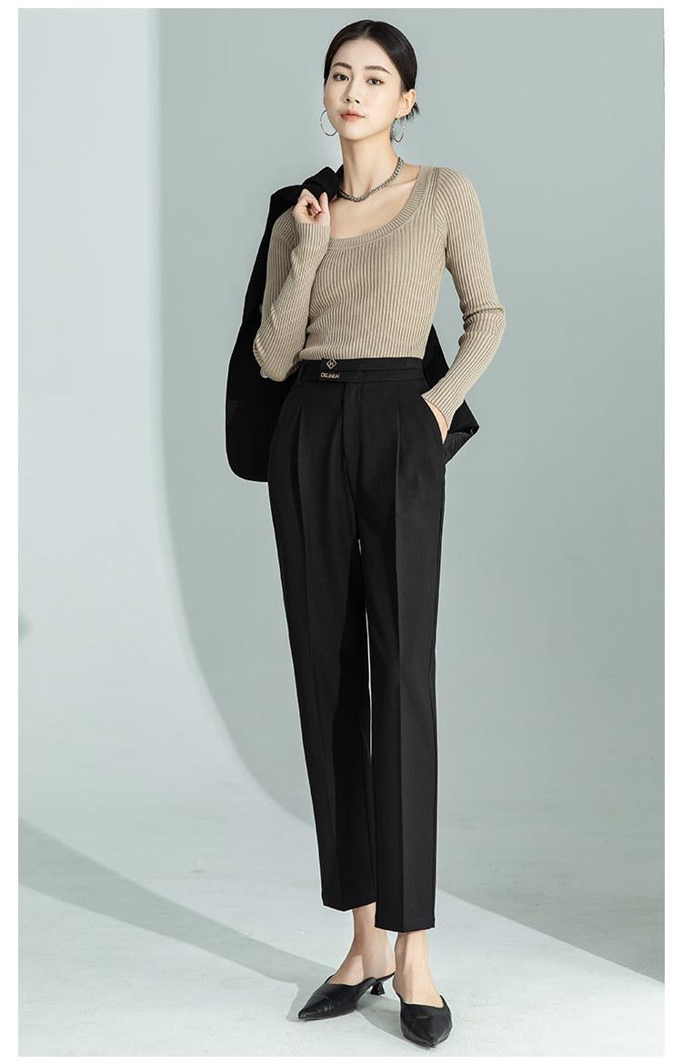 Pantalones casuales estilo commuter nuevos de primavera 2024 para mujer, versátiles, adelgazantes, pantalones cropped microelásticos tipo tubo, pantalones de traje de moda