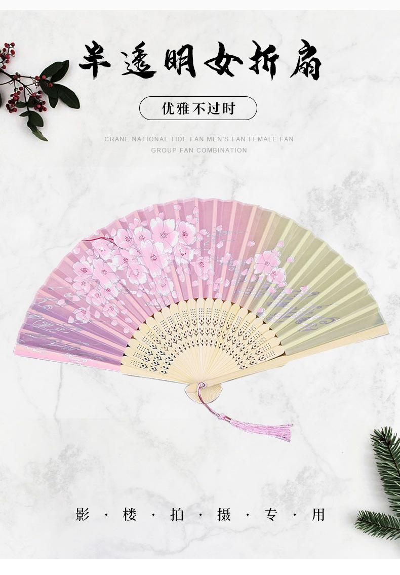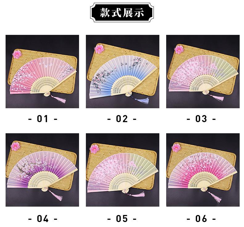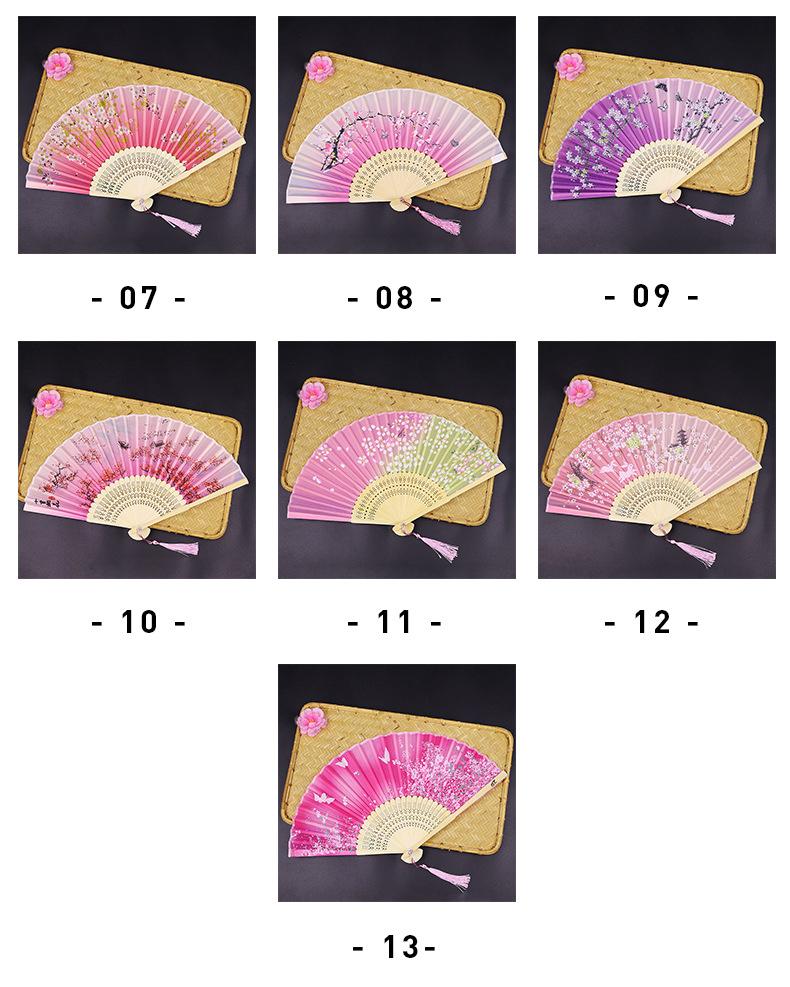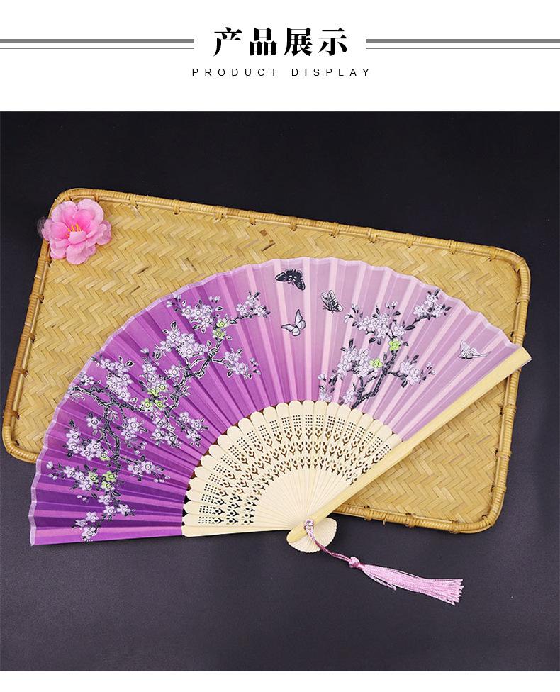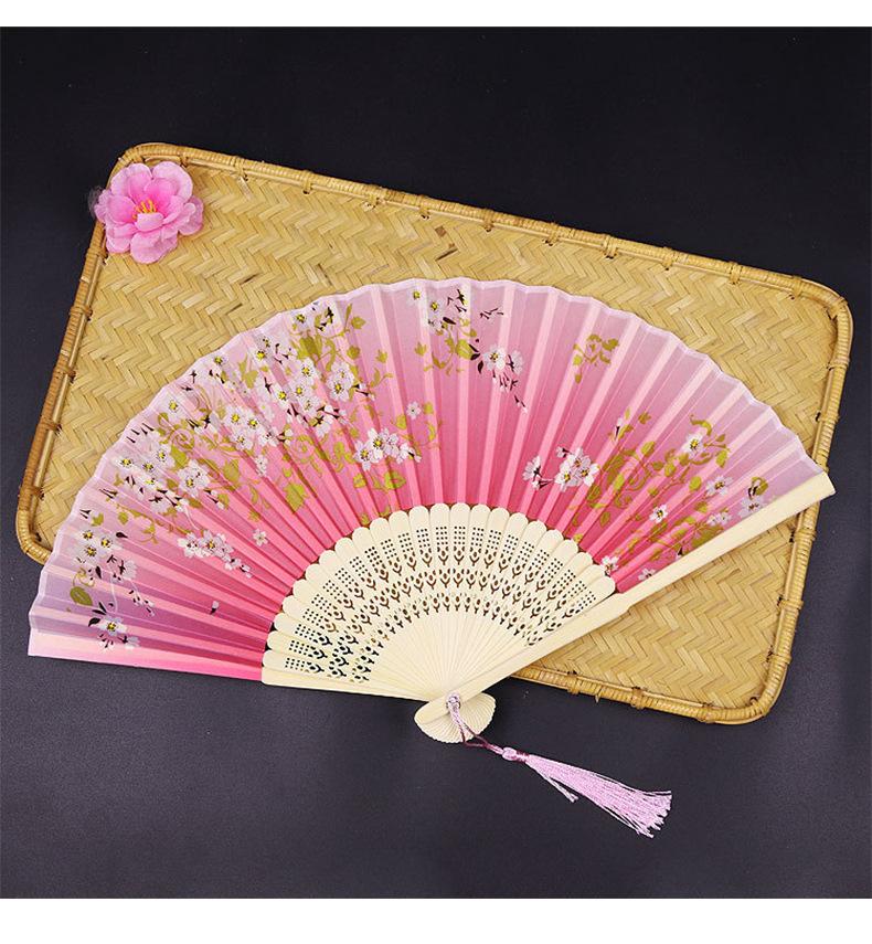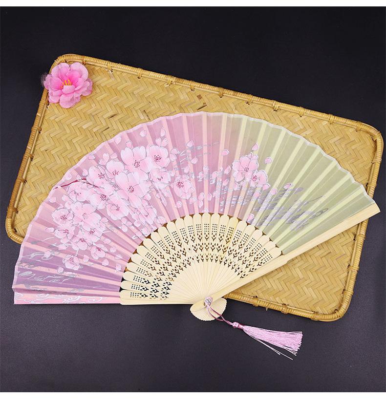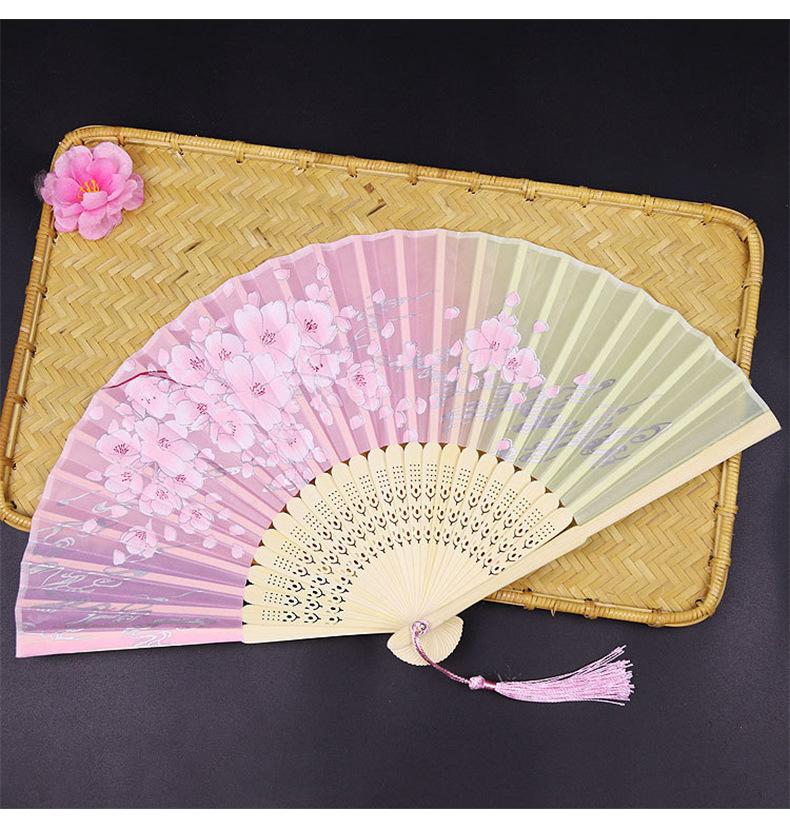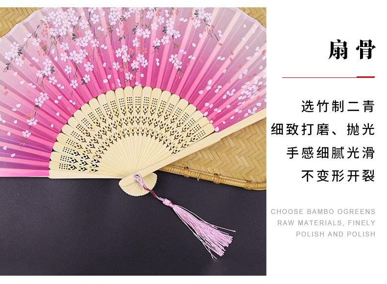 Abanico Plegable Estilo Antiguo Erqing Yixiao Estilo Japonés Portátil Abanico de Bambú Abanico de Flor de Durazno Dulce Abanico para Danza Fabricante de Origen Venta al por Mayor