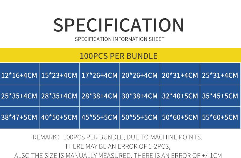 28x38+7+5 (100 pcs/pack), 35x45+7+5 (100 pcs/pack), 40x50+7+5 (100 pcs/pack), 26x33+7+5 (100 pcs/pack), 50x60+...