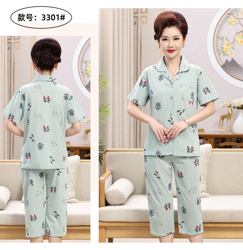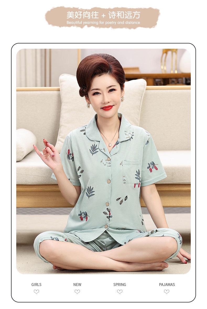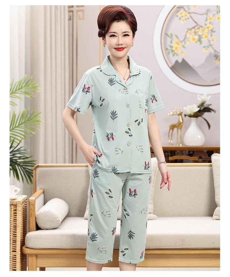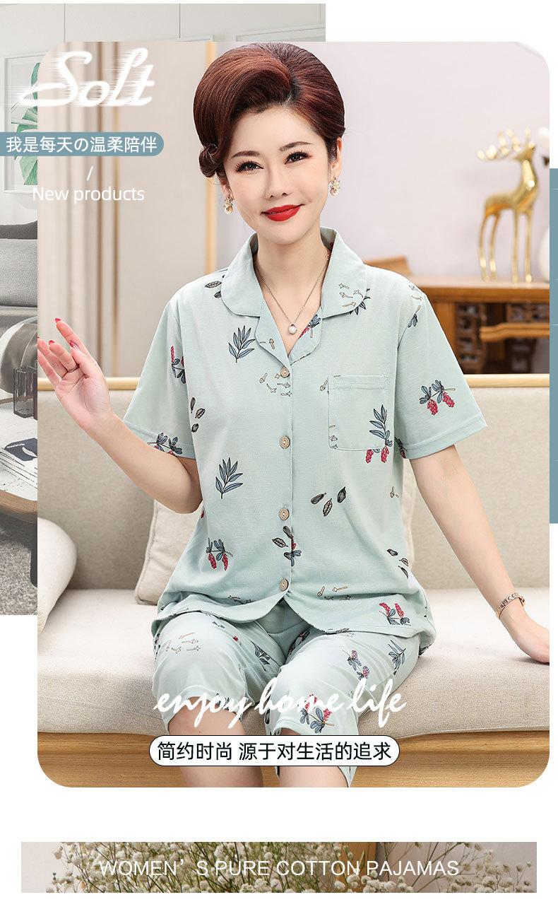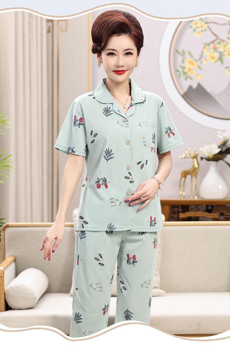 Pijamas de mujer 2023 Verano nuevo algodón fino ocio cómodo suelto ropa de casa para traje de mediana edad se puede usar al aire libre Venta al por mayor
