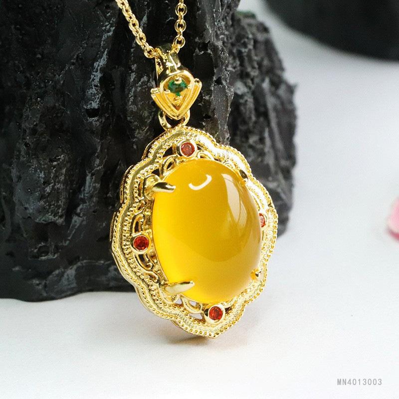 Chalcedony retro pendant (without chain) mn4013003, Yellow chalcedony retro pendant (without chain) mn4013003,...