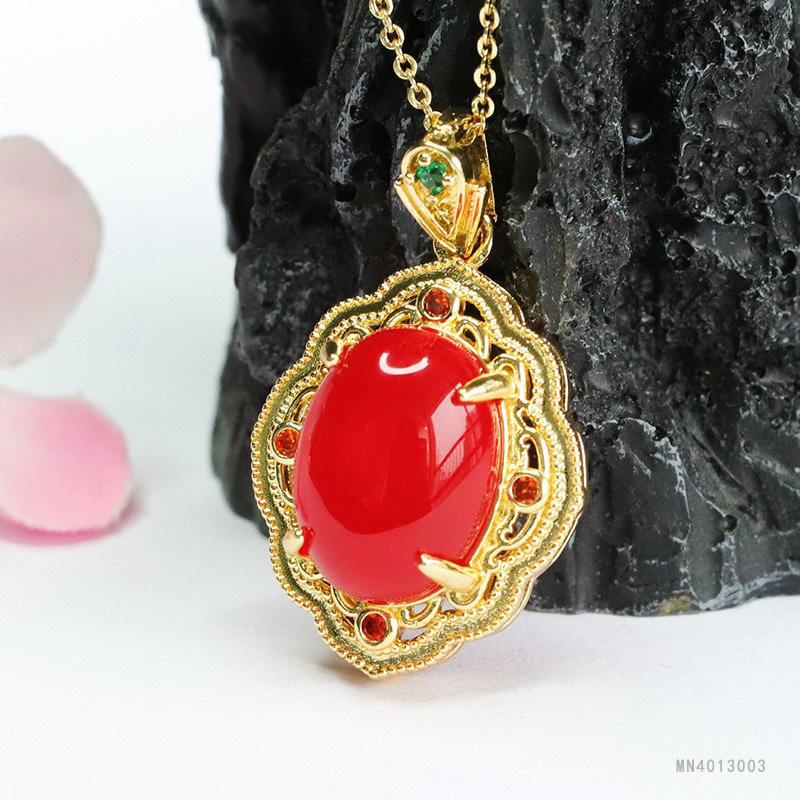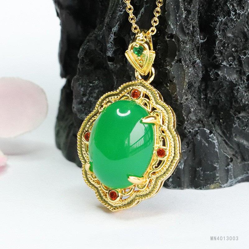 Colgante de calcedonia verde hielo Yuyu, collar de ágata roja, joyería retro para mujer, venta al por mayor, MN4013003