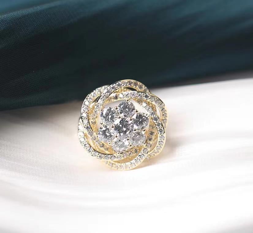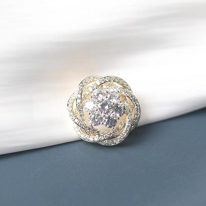 Broche Pequeño de Flor de Cristal de Corea del Sur para Mujer de Alta Gama para Falda, Pin de Cuello Antiluz, Botón para Cuello de Camisa, Pin Pequeño para Traje, Accesorios