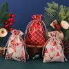 Bolsa Navideña de Lino con Cordón Nuevo Transfronterizo Estampado en Caliente Decoración de Árbol de Navidad Bolsa de Regalo Dulces Regalo de Navidad Bolsa con Cordón
