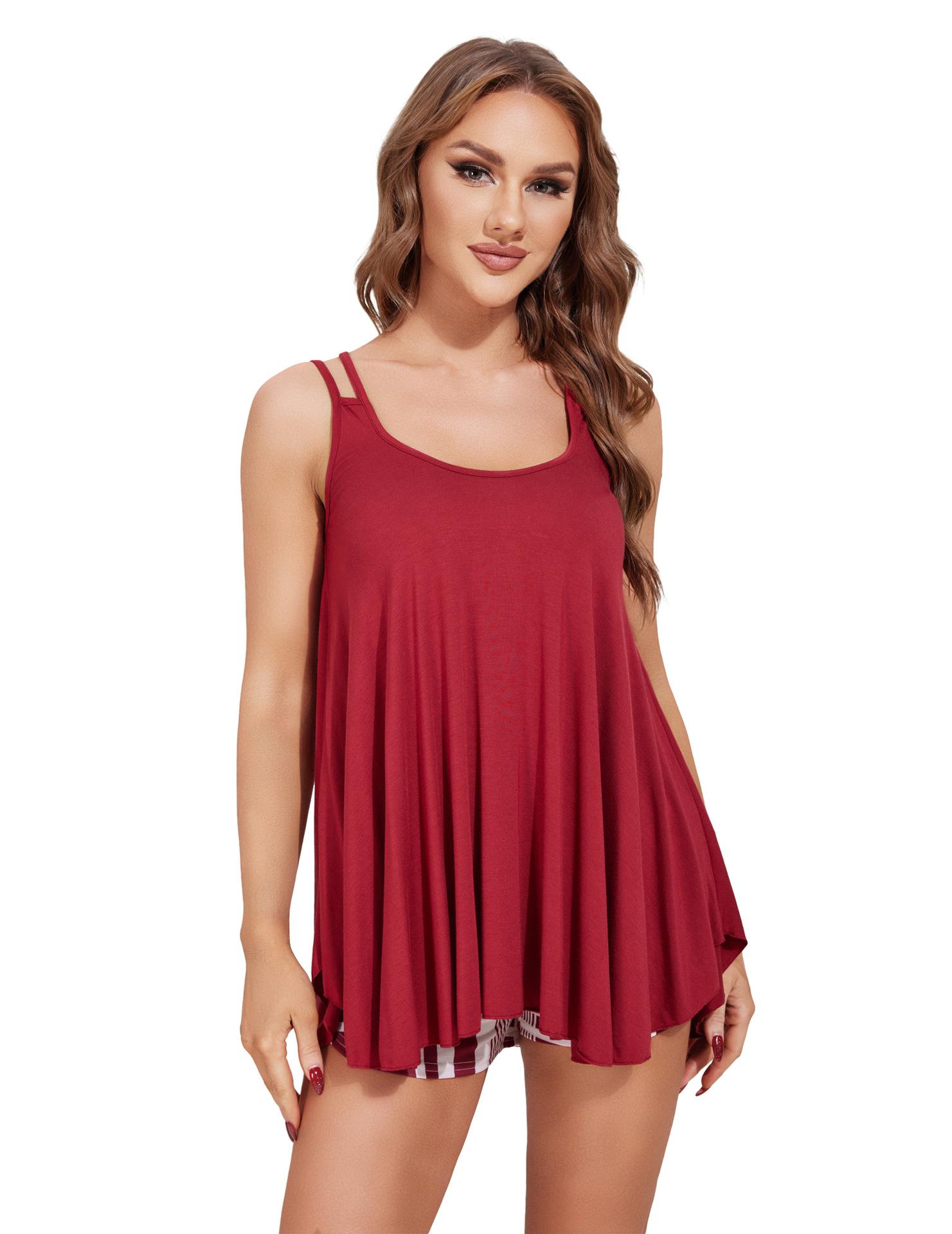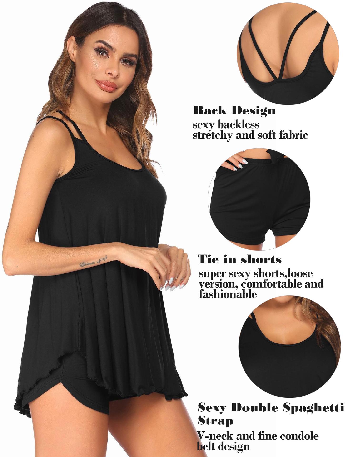 Conjunto de pijama de dos piezas con tirantes y pantalones cortos para mujer, ropa de casa transfronteriza de Europa y América para primavera y verano
