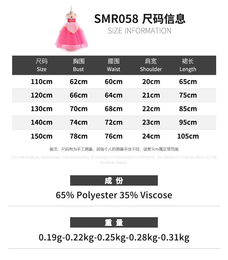 Vestido de cosplay para niñas, vestido de princesa Super Mario con encaje y mangas abullonadas, vestido para niños