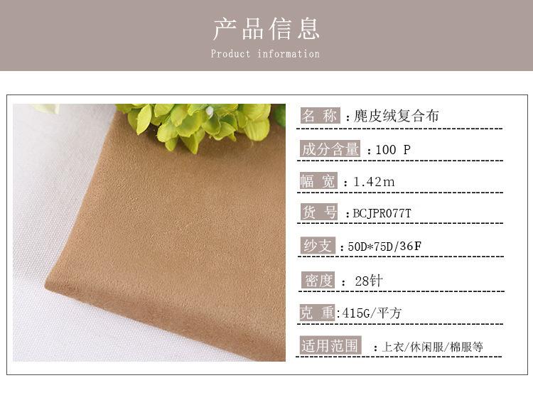 Tejido grueso compuesto de poliéster teñido de gamuza, moda casual, tops de mujer, vestido, tejido para ropa ¥35.00 ![]() | Nuevo abrigo de vestir para mujer de moda de gamuza de capa de aire compuesta ¥25.00 ![]() | |